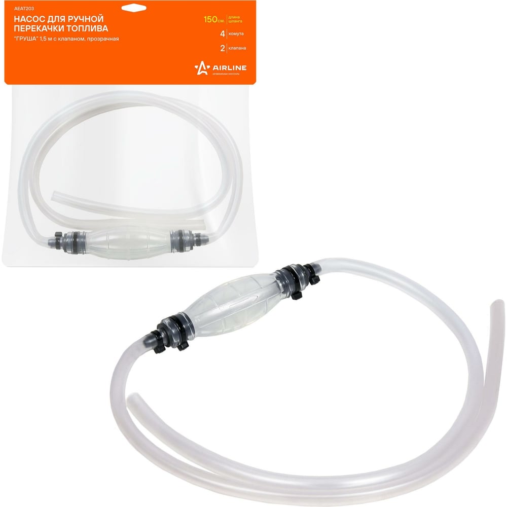 Насос для ручной перекачки топлива Airline Груша 1.5 м, с клапаном, прозрачная AEAT203