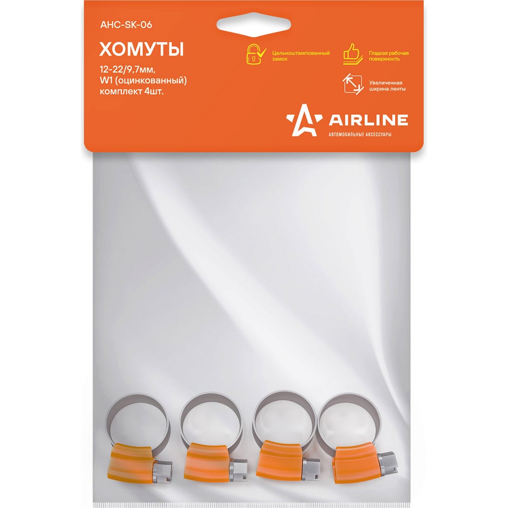Червячные усиленные хомуты Airline 12-22/9.7 мм W1, оцинк., комплект 4 шт AHC-SK-06