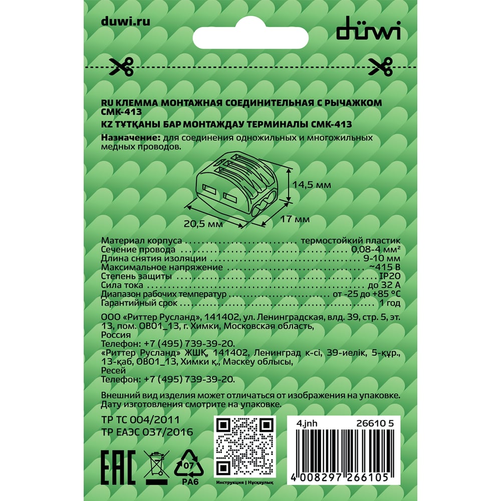 | Габариты без упаковки | 17x20.5x14.5 мм |
