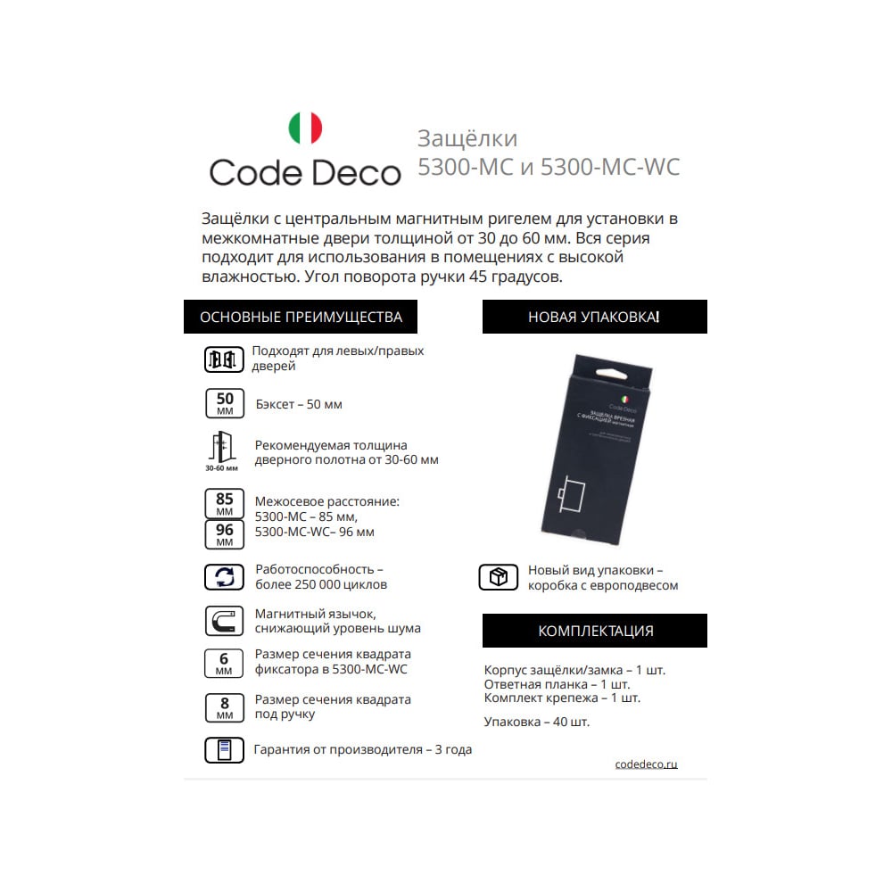 Врезная защелка Code Deco 5300-MC-WC-AB 31290