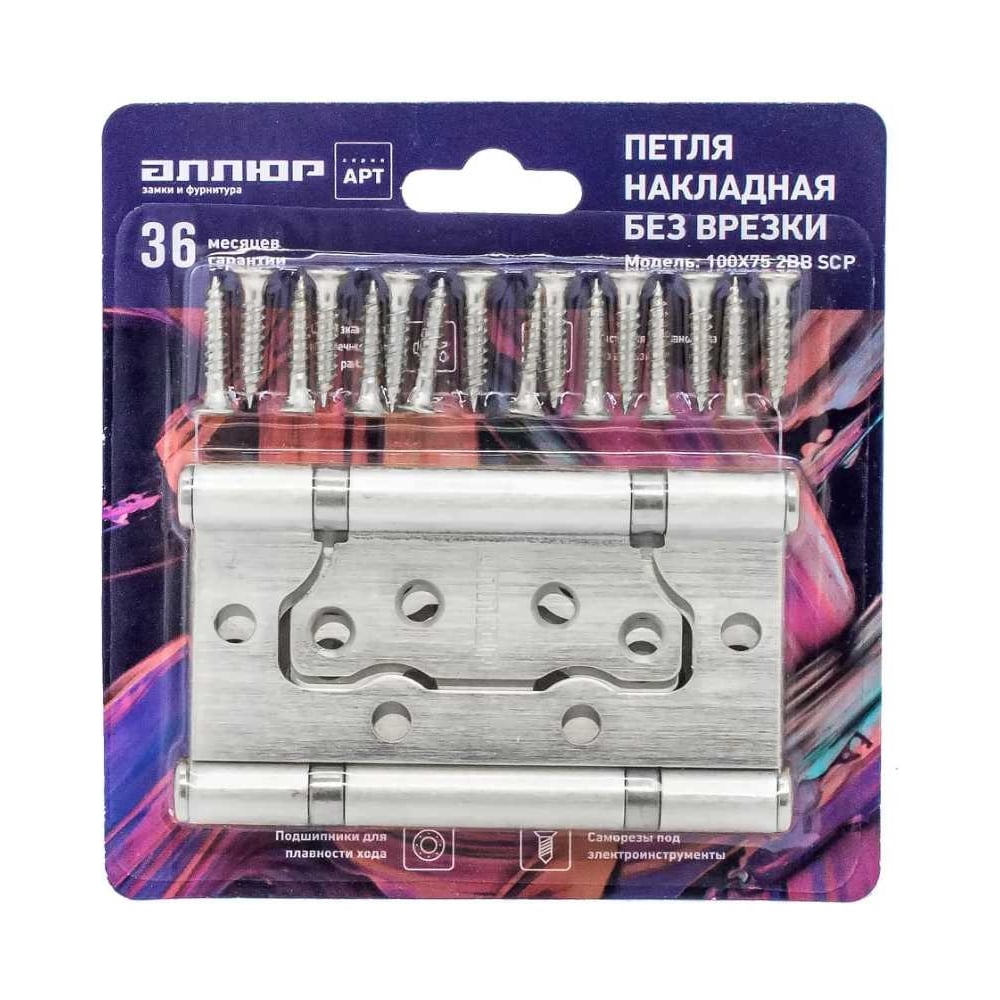 Накладная петля без врезки Аллюр 2BB SCP (100х75 мм; 2.5 мм; матовый хром; 2 шт; коробка) 7562