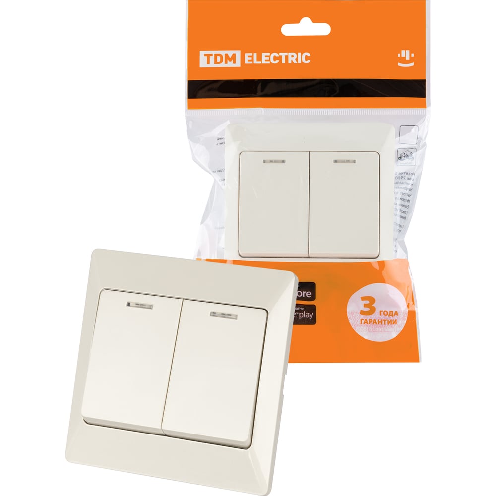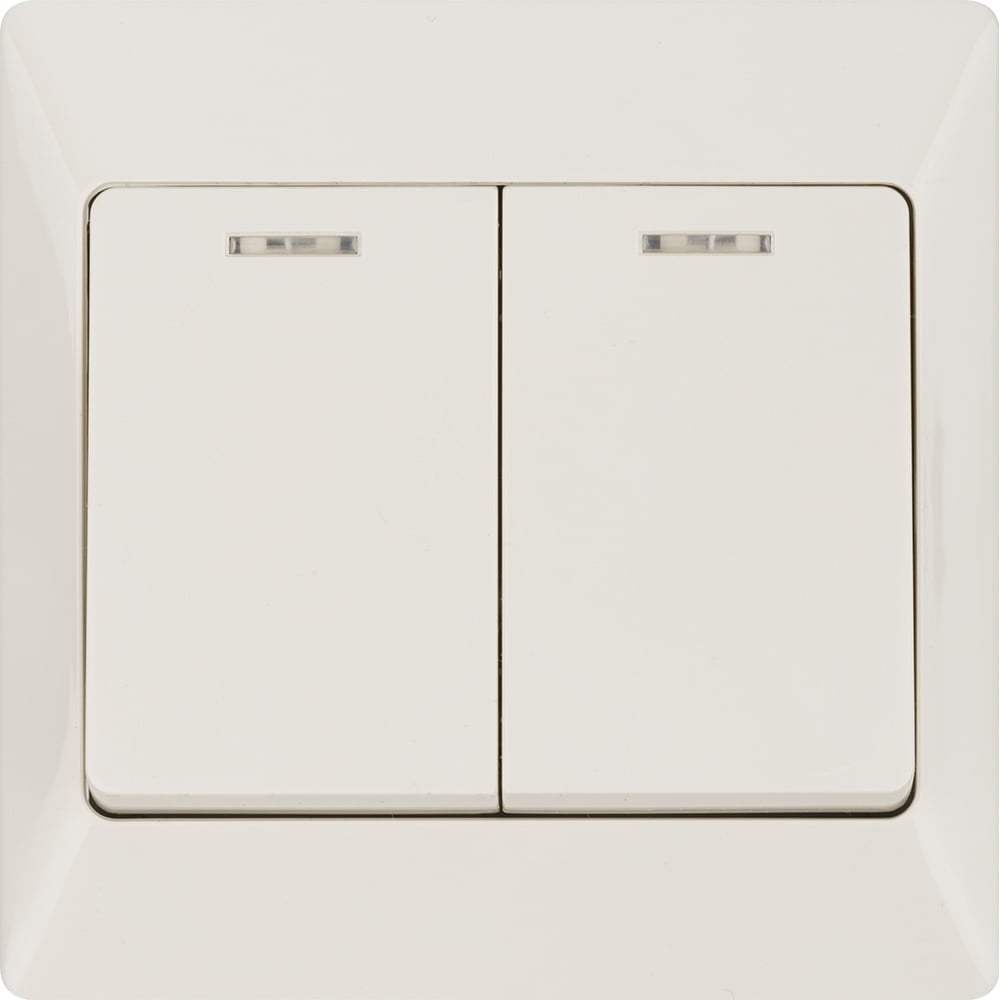 Выключатель слоновая кость 2 клавишный с подсветкой TDM ELECTRIC 10А, серия "Ильмень" SQ1823-0104