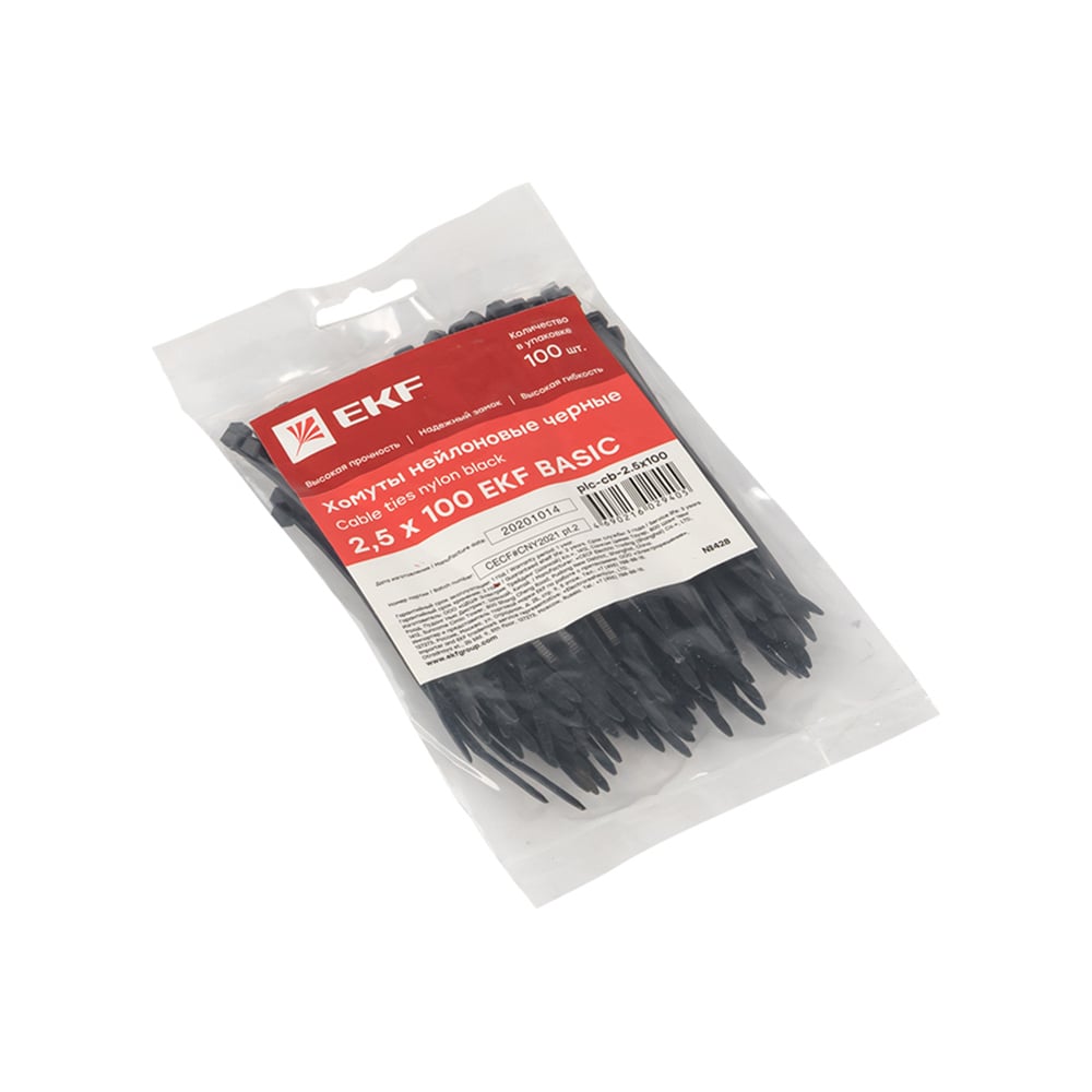 Нейлоновый хомут EKF черный 2,5х100 100 шт. Basic plc-cb-2.5x100