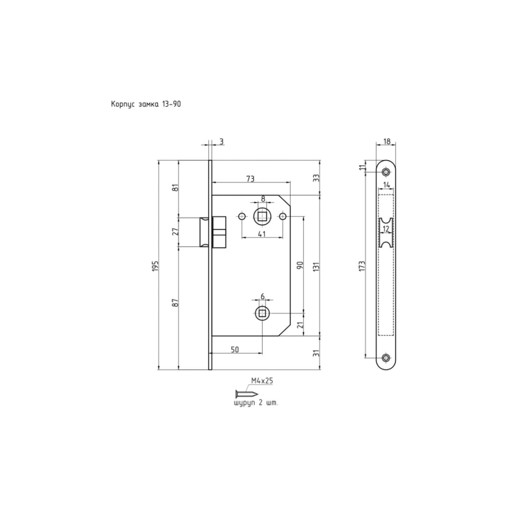 Корпус замка НОРА-М 13-90 мм старая бронза, под фиксатор 8556