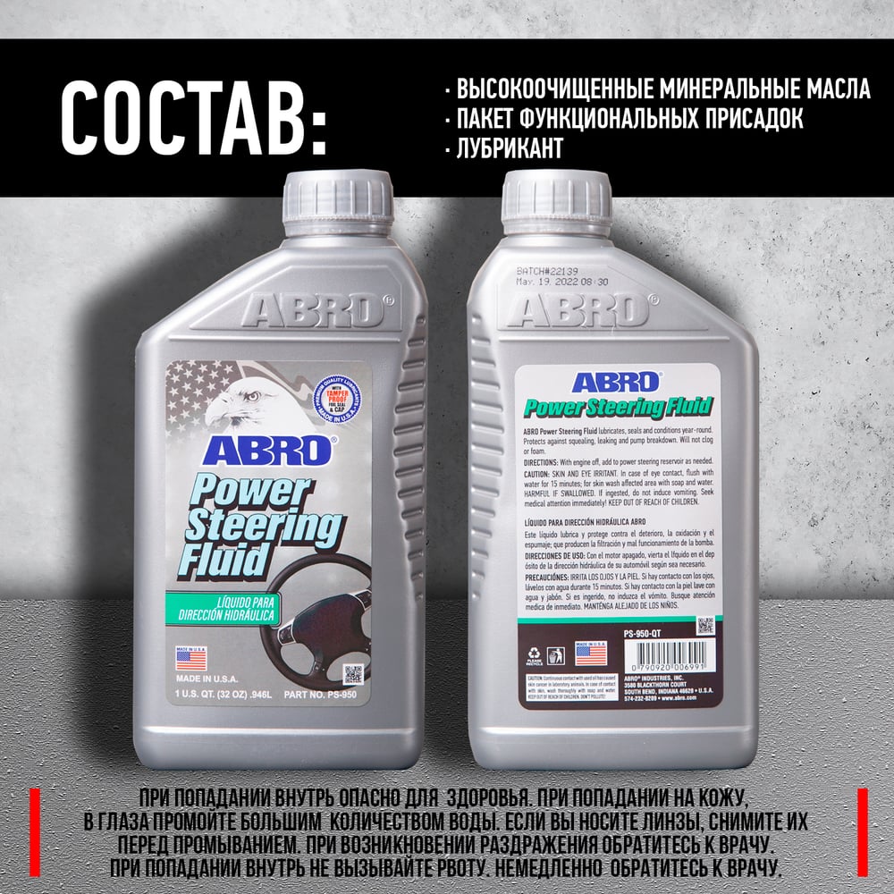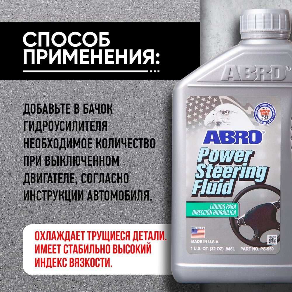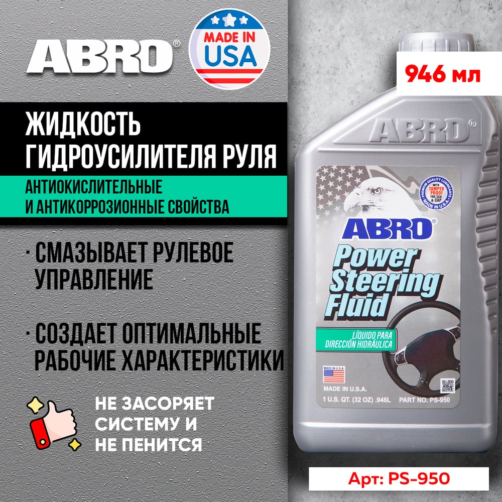 Жидкость гидроусилителя руля ABRO эконом класс 946 мл PS-950-QT