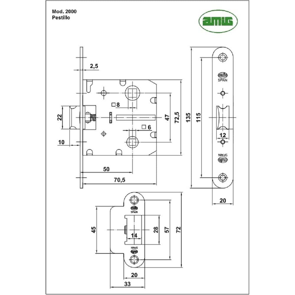 Дверная сантехническая защелка Amig 20-50 A