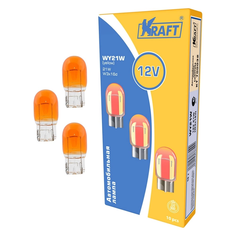 Лампа накаливания KRAFT WY21W 12v21w W3x16d yellow упаковка 10 шт. KT 700032