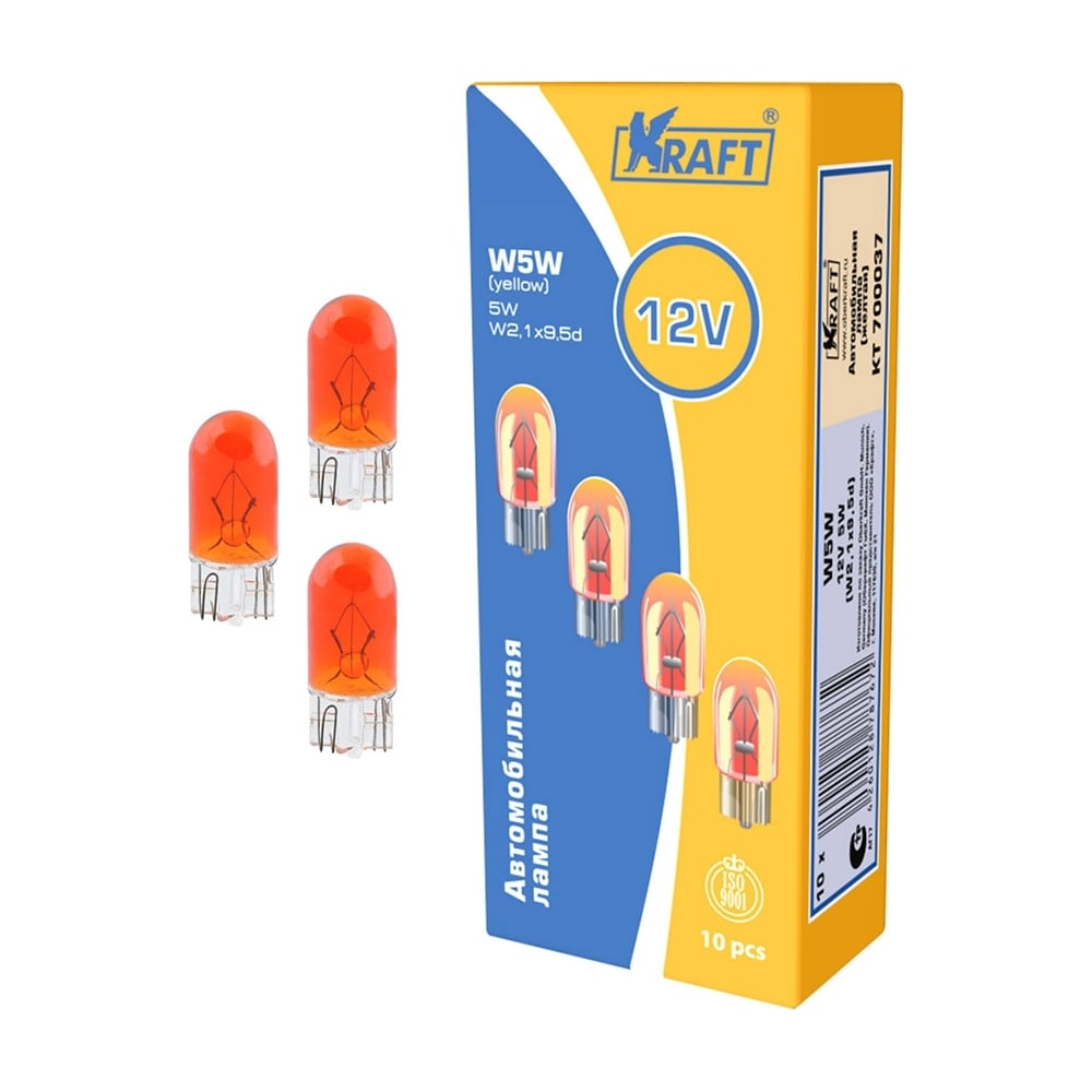 Лампа накаливания KRAFT WY5W 12v5w W2.1x9.5d yellow упаковка 10 шт. KT 700037