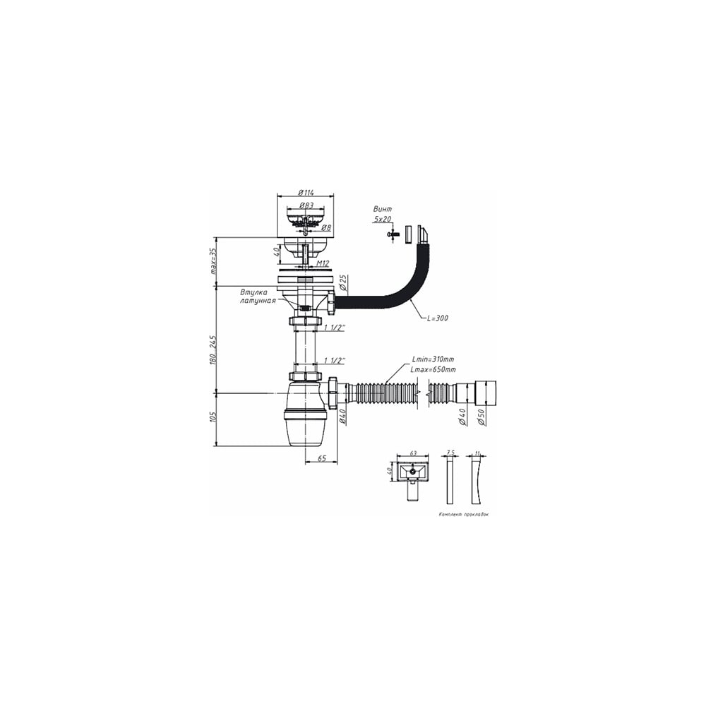 Бутылочный сифон ORIO 3 1/2х40 с переливом, гибкой трубой 40-40/50 А-40079