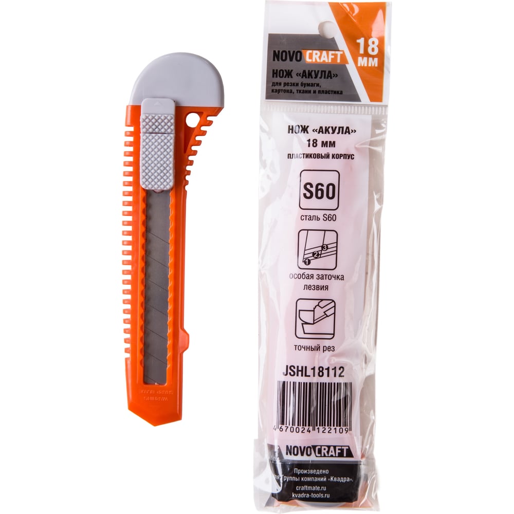 Нож Novocraft АКУЛА-light PE корпус, 18 мм JSHL18112