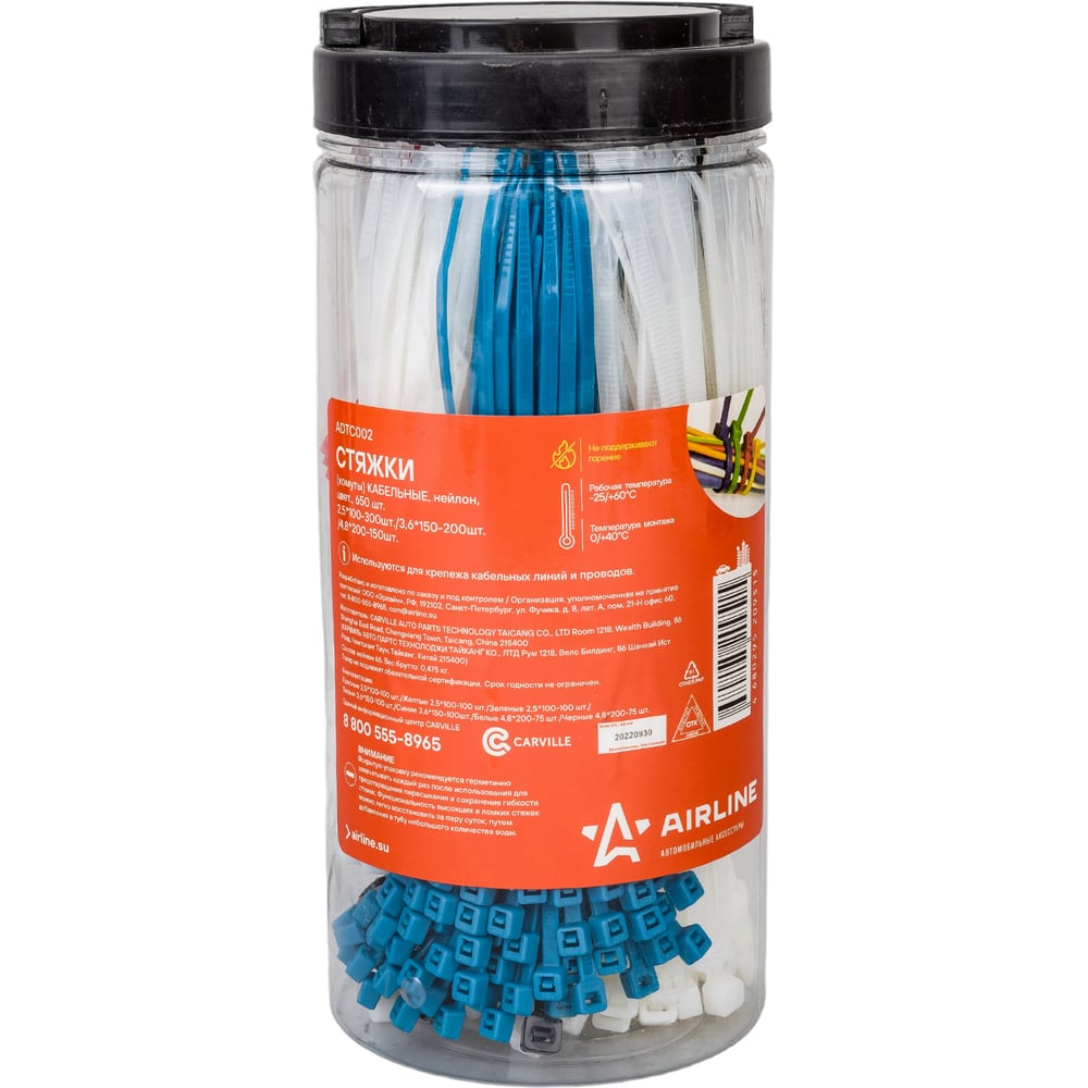 Кабельные стяжки Airline нейлон, цвет., 650 шт. ADTC002