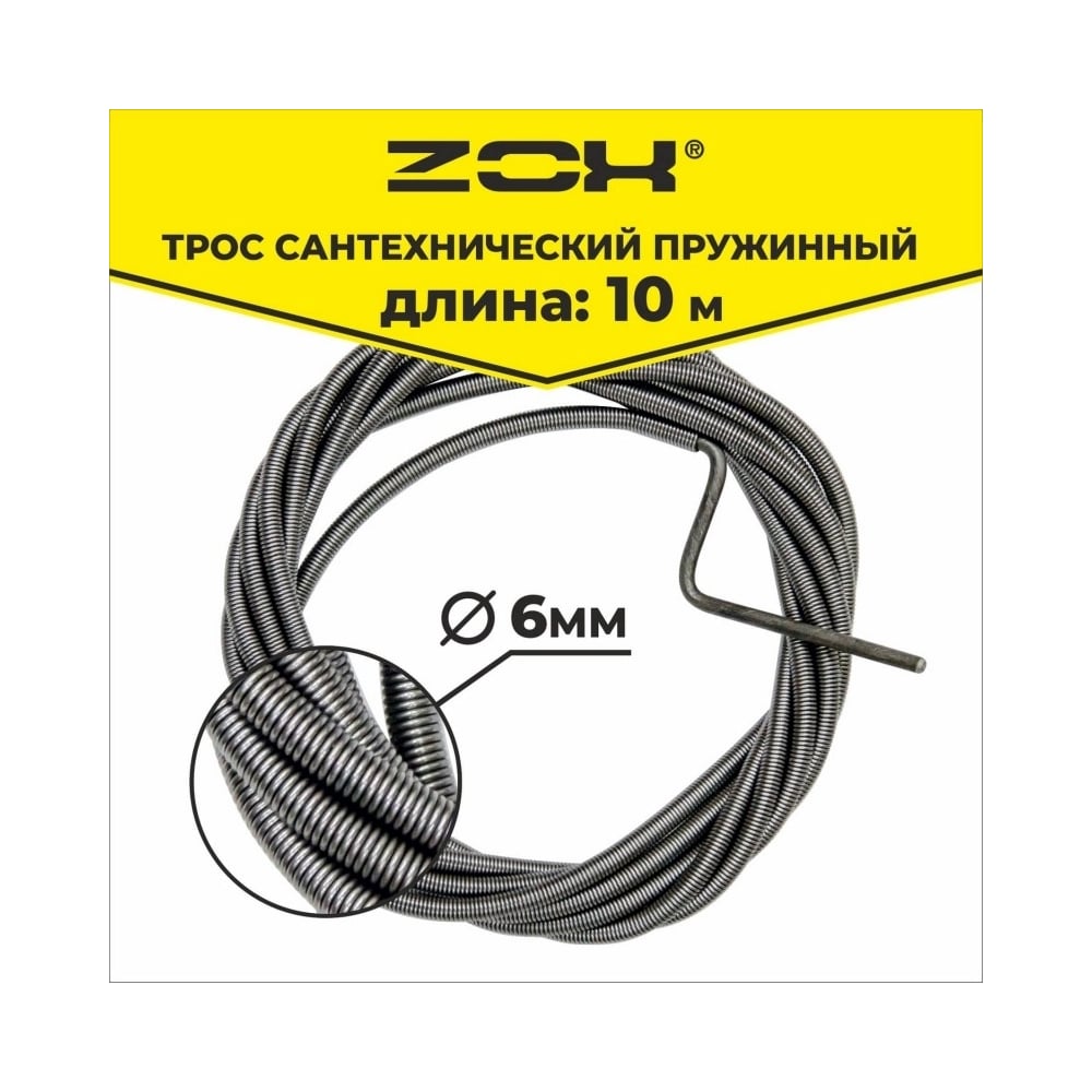Сантехнический трос Zox 10 м, 6 мм 501624