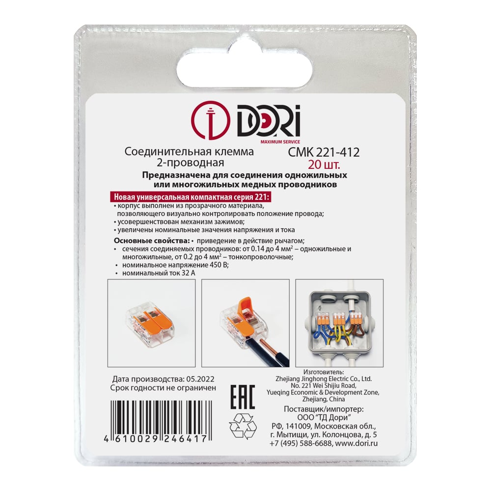 Соединительная 2-проводная клемма DORI СМК 221-412 (20 шт.) 46417