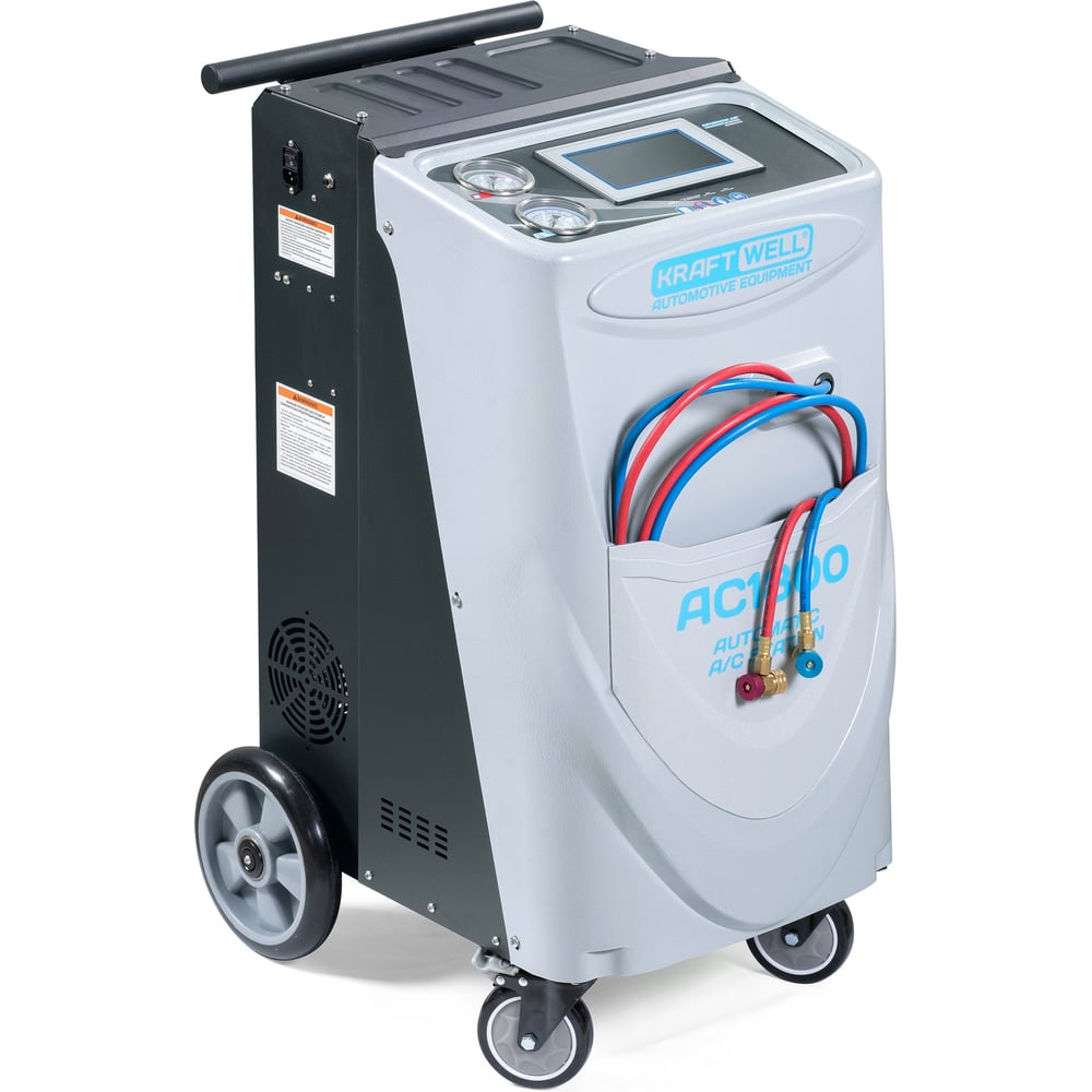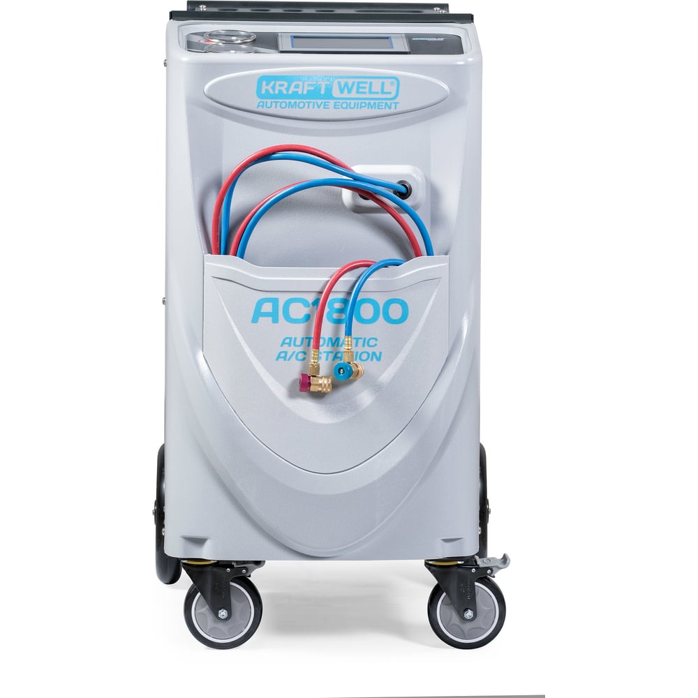 Установка для заправки автомобильных кондиционеров KraftWell с сенсорным дисплеем, автоматическая, фреон R-134a, 120 л/мин., внутр. ёмкость 14.5 л AC1800