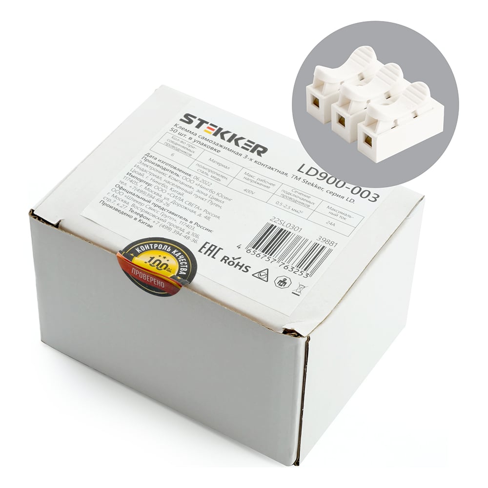 Самозажимная 3-х контактная клемма STEKKER LD900-003 39881