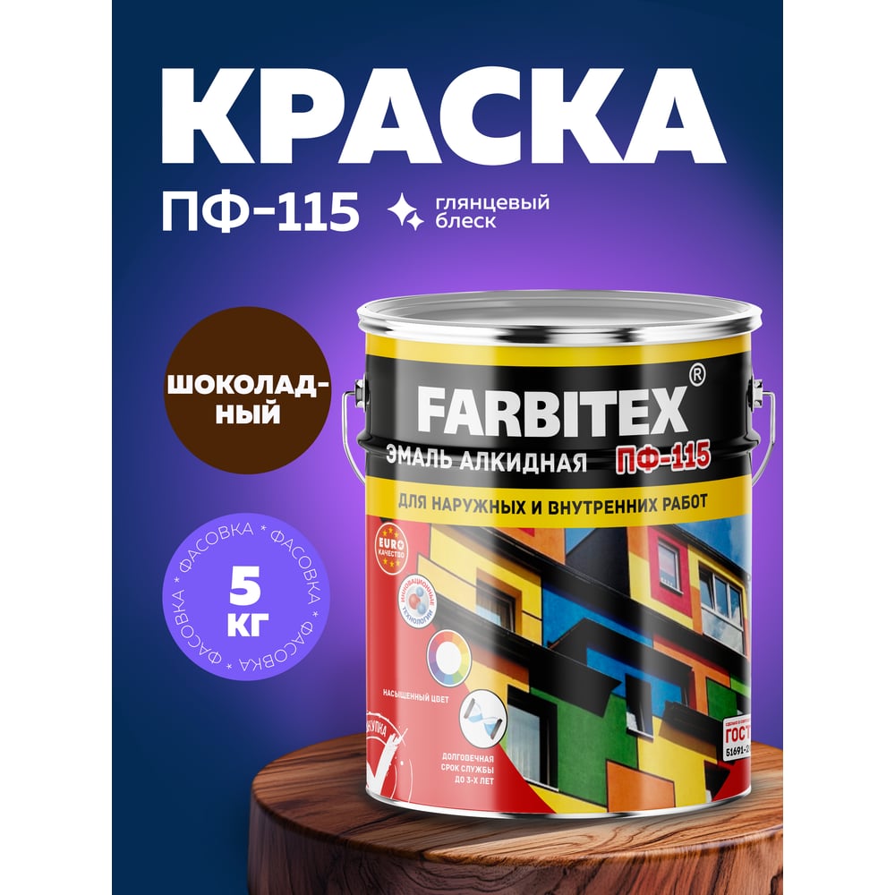 Алкидная эмаль FARBITEX ПФ-115 (шоколадный; 5 кг) 4300004383