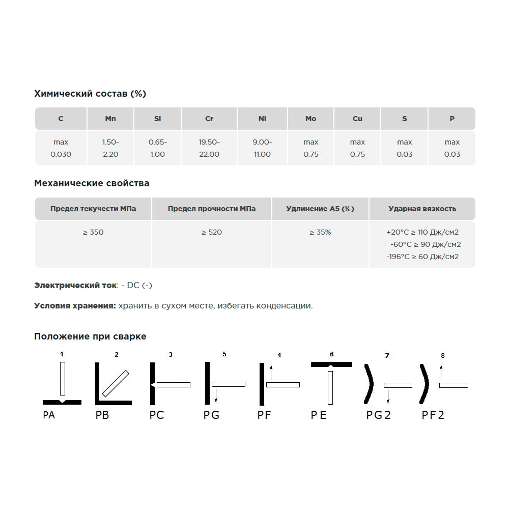 | Назначение | для нержавеющих сталей |