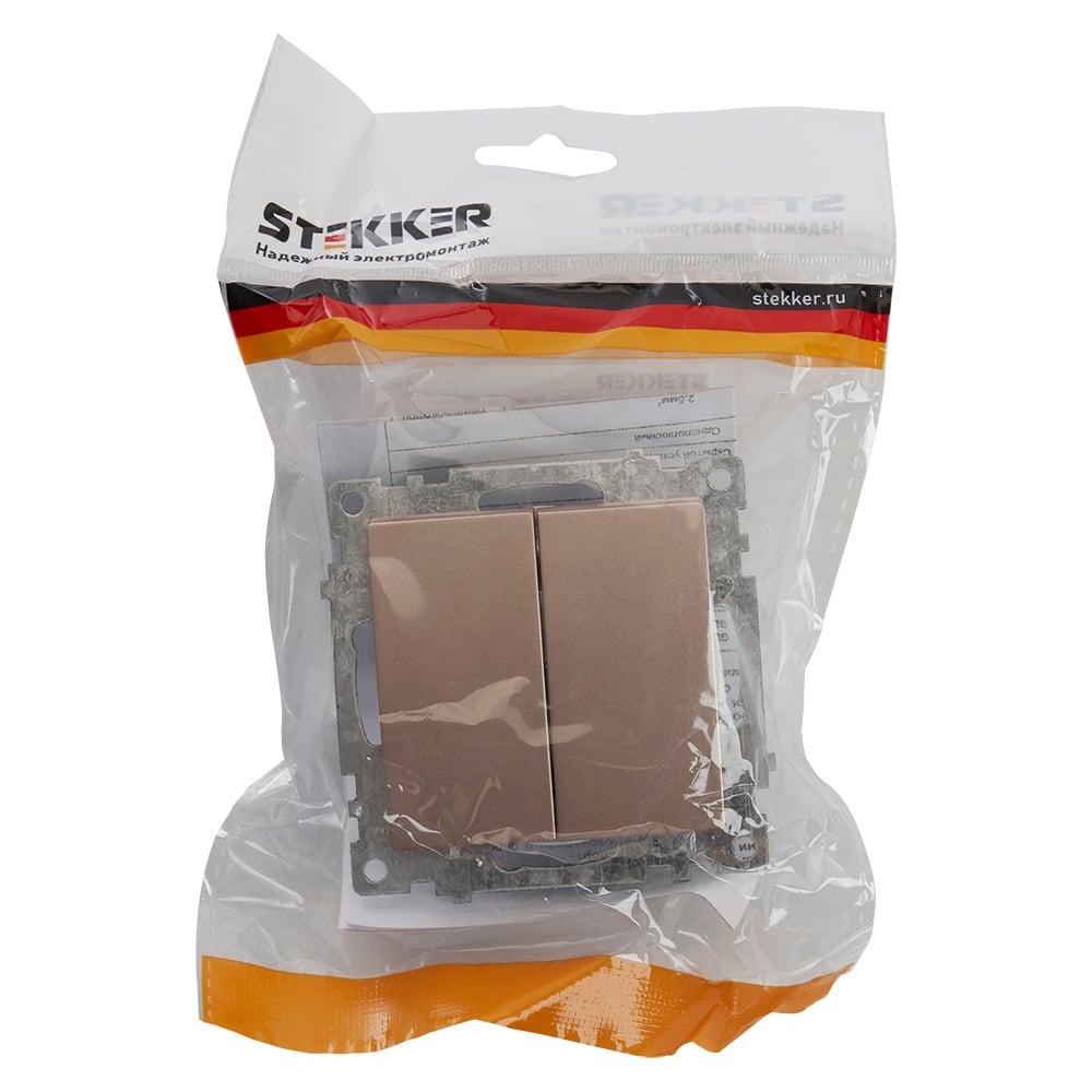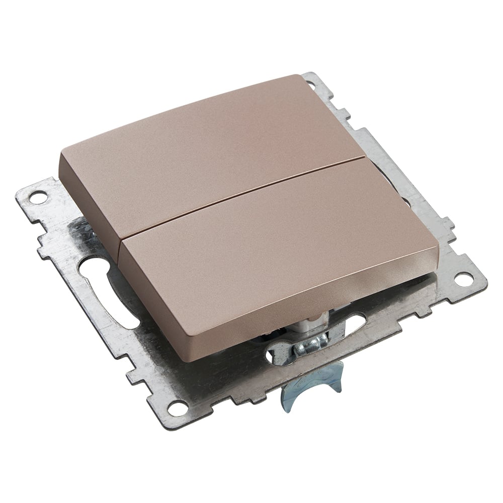 2-клавишный выключатель STEKKER (механизм), GLS10-7104-02, 250V, 10А, серия Катрин, шампань 39592