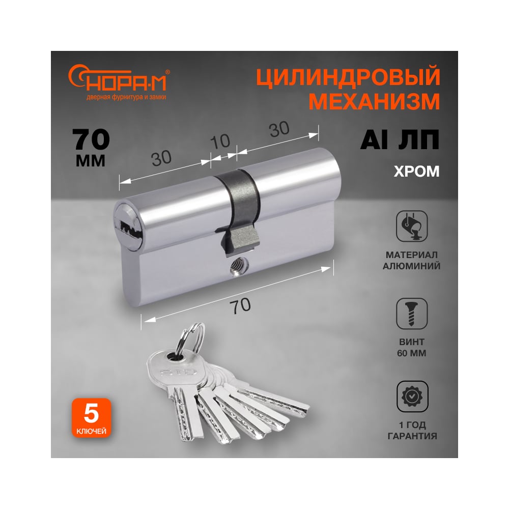 Цилиндровый механизм НОРА-М STD AL ЛП-70 35-35 хром 15538