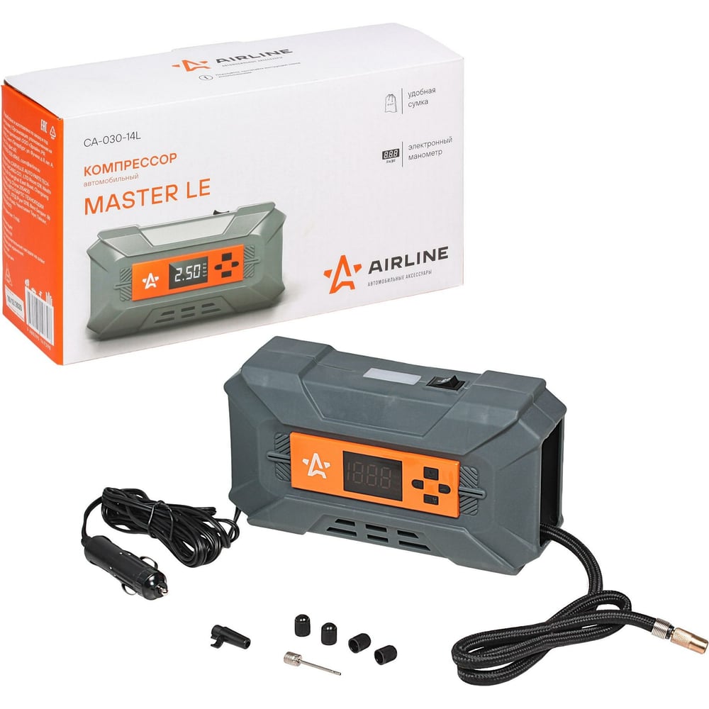 Компрессор AIRLINE MASTER LE электронный манометр, пластиковый корпус, фонарь, в сумке, 22 л/мин, 7 атм CA-030-14L
