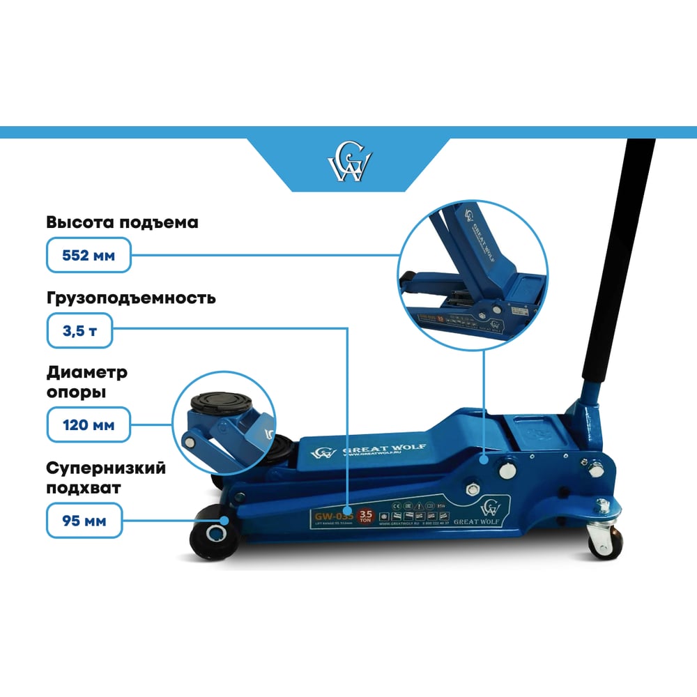 Низкопрофильный гидравлический подкатной домкрат Great Wolf 3,5 т, 95-552 мм GW-035