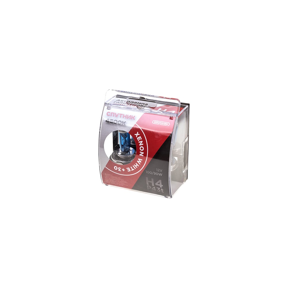 Автолампа SKYWAY XENON WHITE+30, H4, 12V, 100/90W, P43t, 2-контакта, 4500 К, 2 шт S09101037