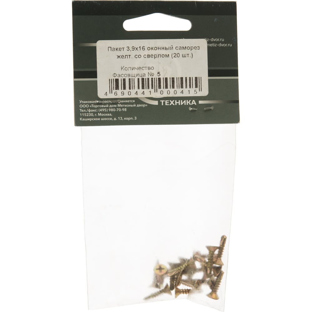 Оконный саморез Метизный двор 3,9x16 сверло, желтый, 20 шт. 4690441000415