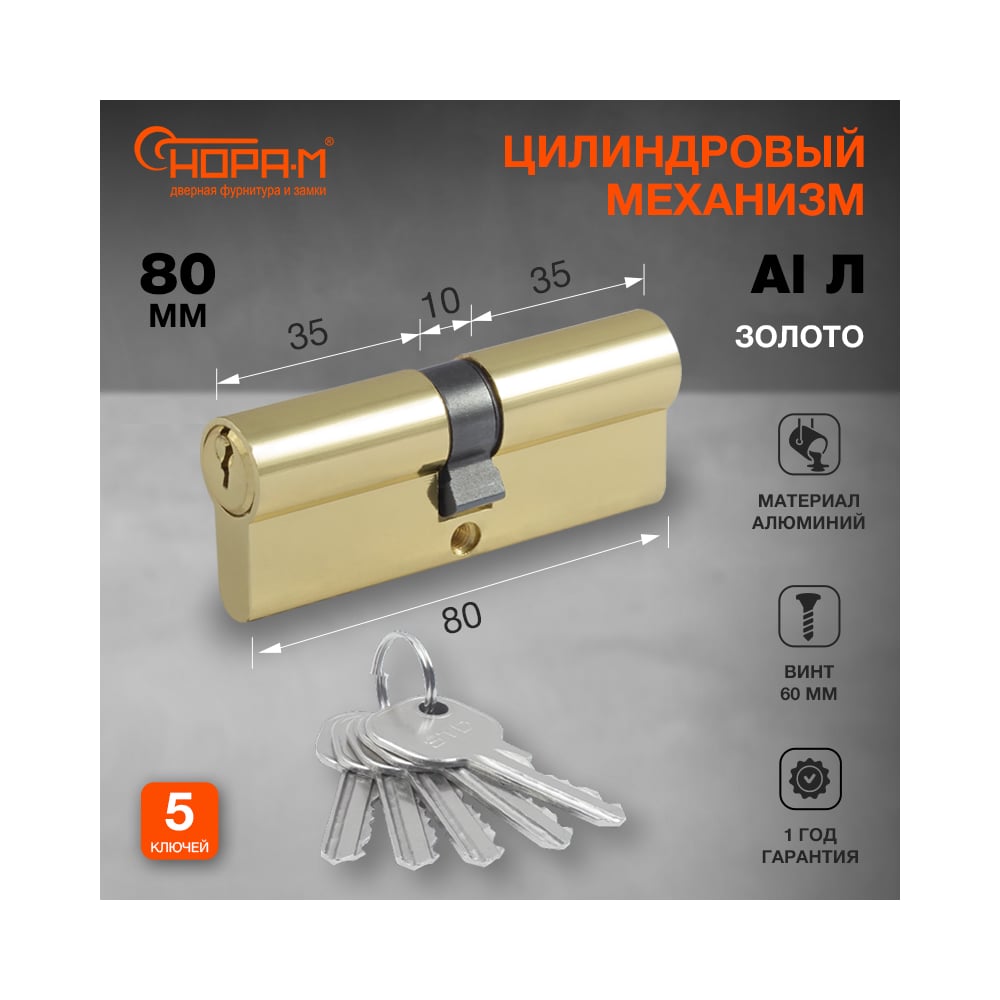 Цилиндровый механизм НОРА-М STD AL Л-80 40-40 золото 15276