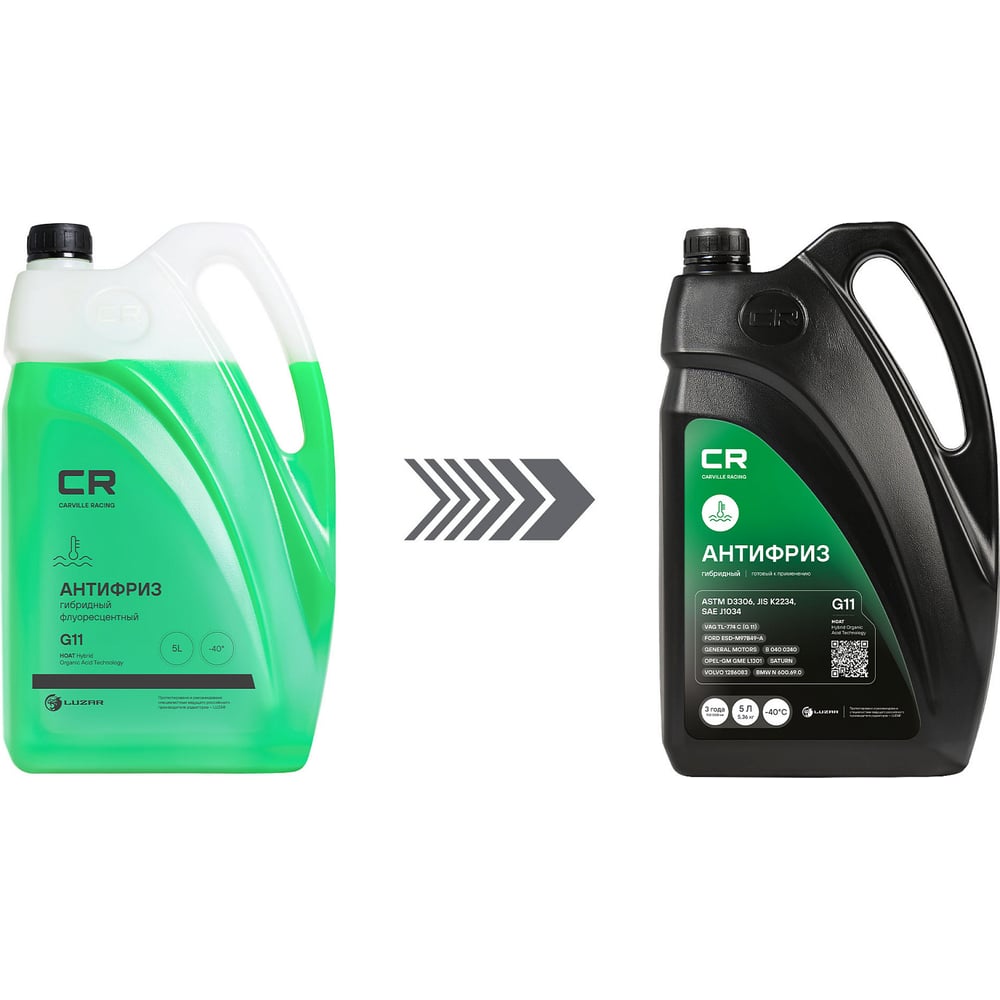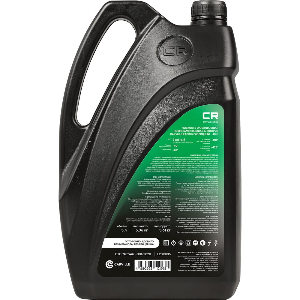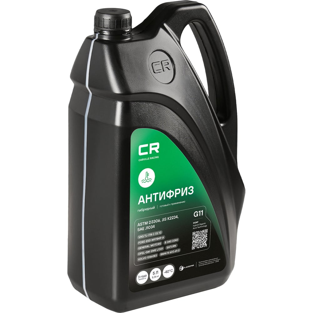 Антифриз CARVILLE RACING CR гибридный флуор, готовый, до -40С, G11, зеленый, 5 л/5.37 кг L2018105