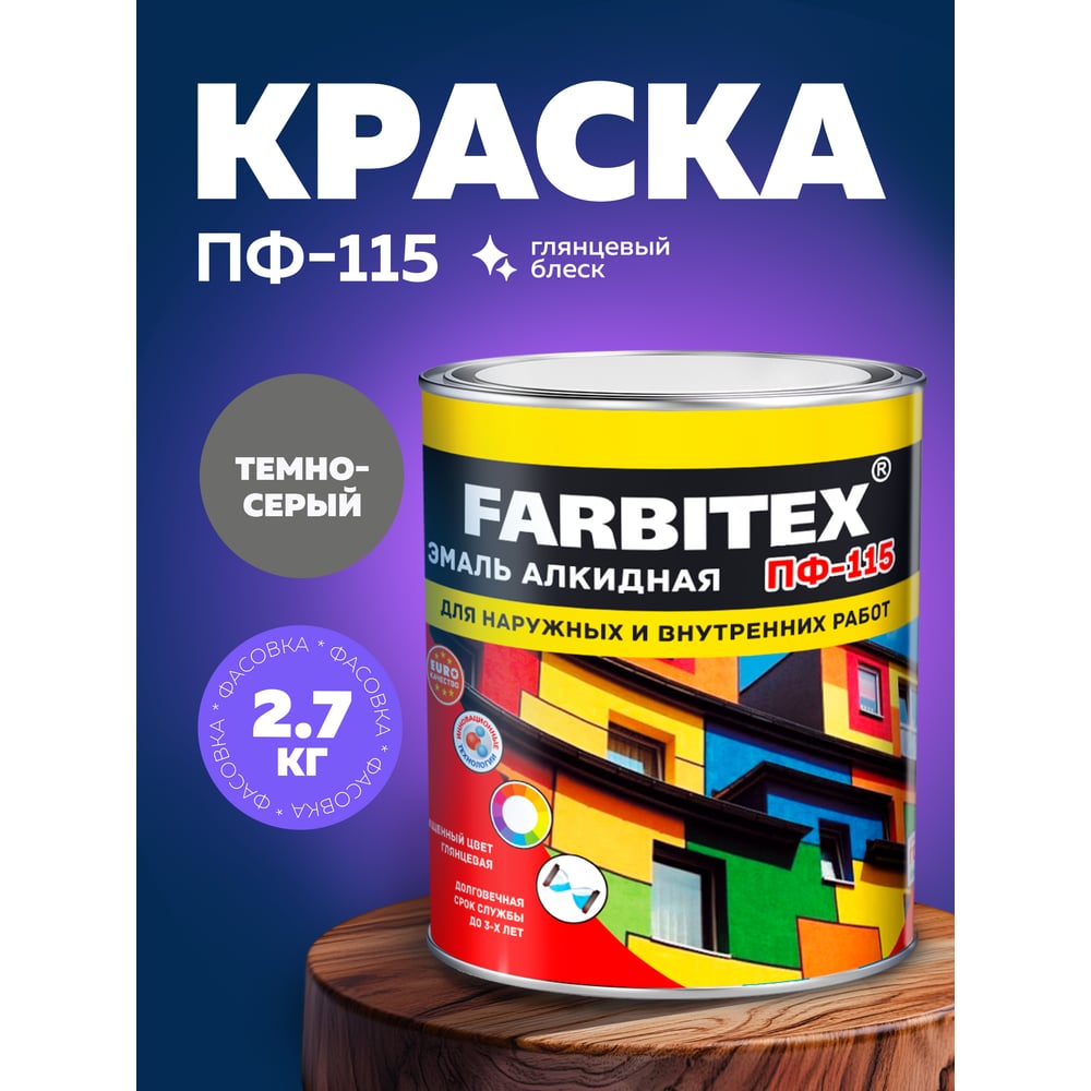 Алкидная эмаль FARBITEX ПФ-115 (темно-серый; 2.7 кг) 4300004387