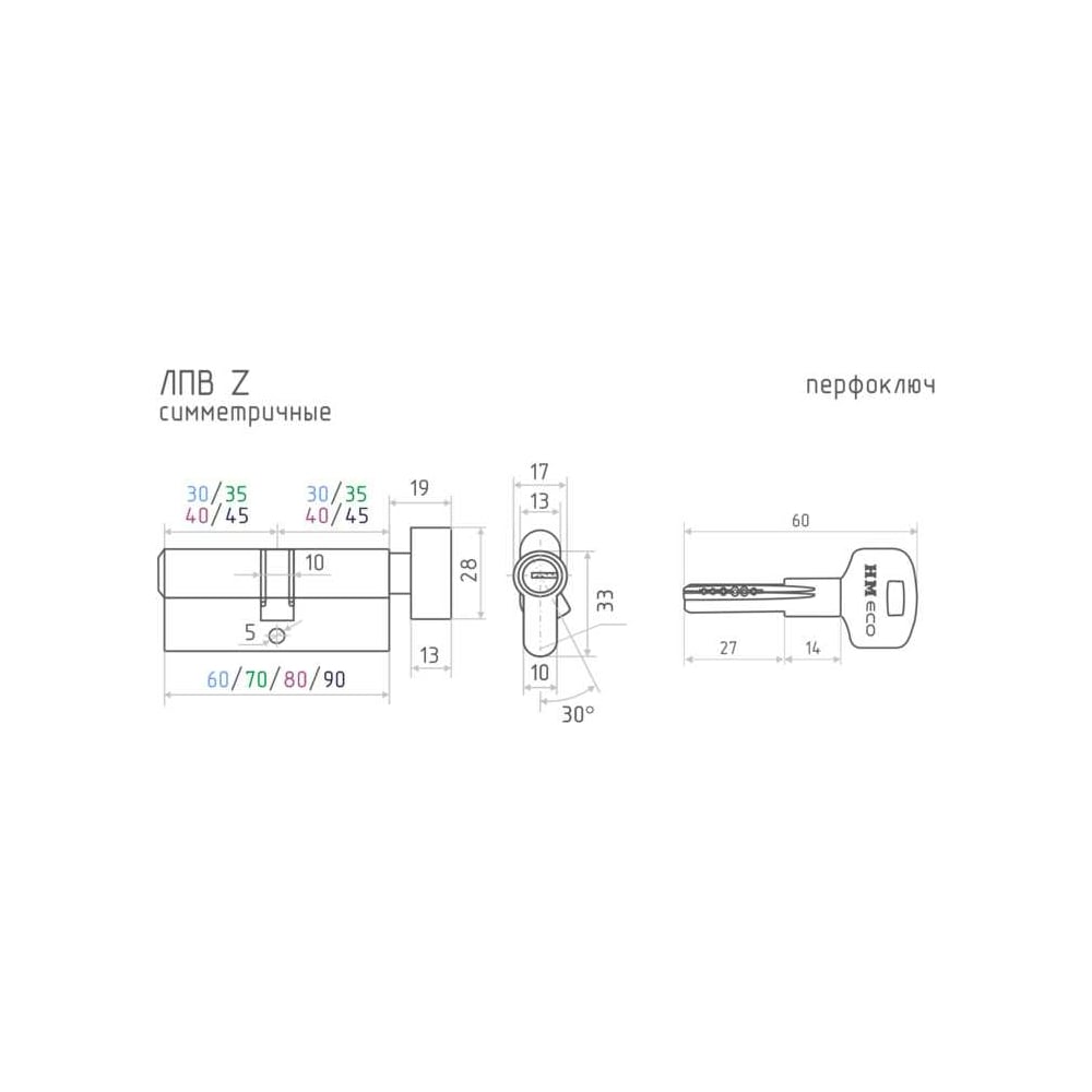 Цилиндровый механизм с вертушкой НОРА-М ЕСО Z ЛПВ-90 45-45 18904