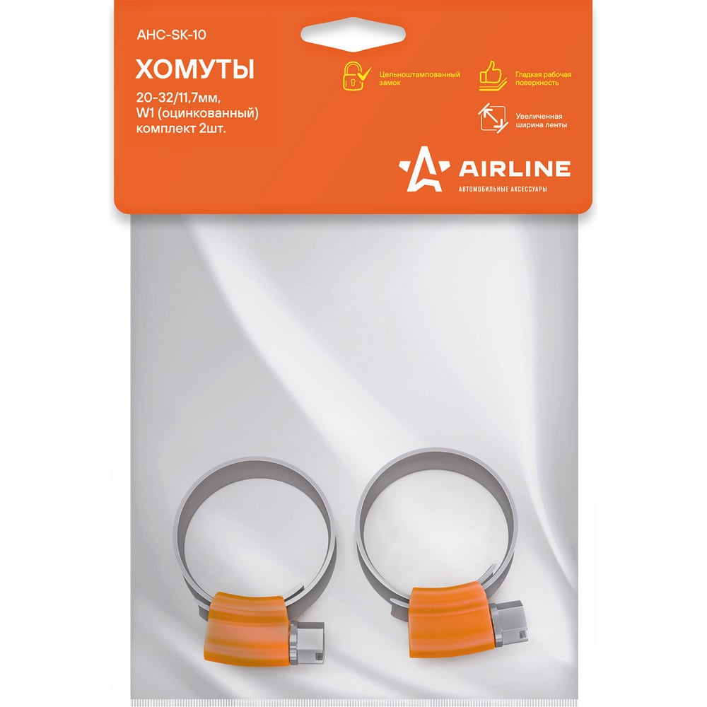 Червячные усиленные хомуты Airline 20-32/11,7 мм, W1 оцинк., комплект 2 шт. AHC-SK-10