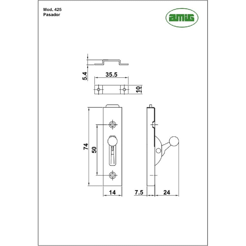 Задвижка Amig нижняя, покрытие никель 425-75 NI