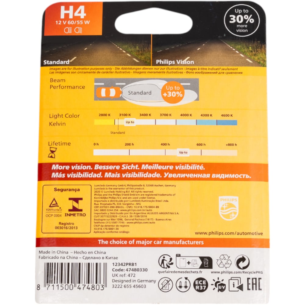 Автолампа PHILIPS H4 60,55 P43t-38+30 12V ,1,10 12342PRB1