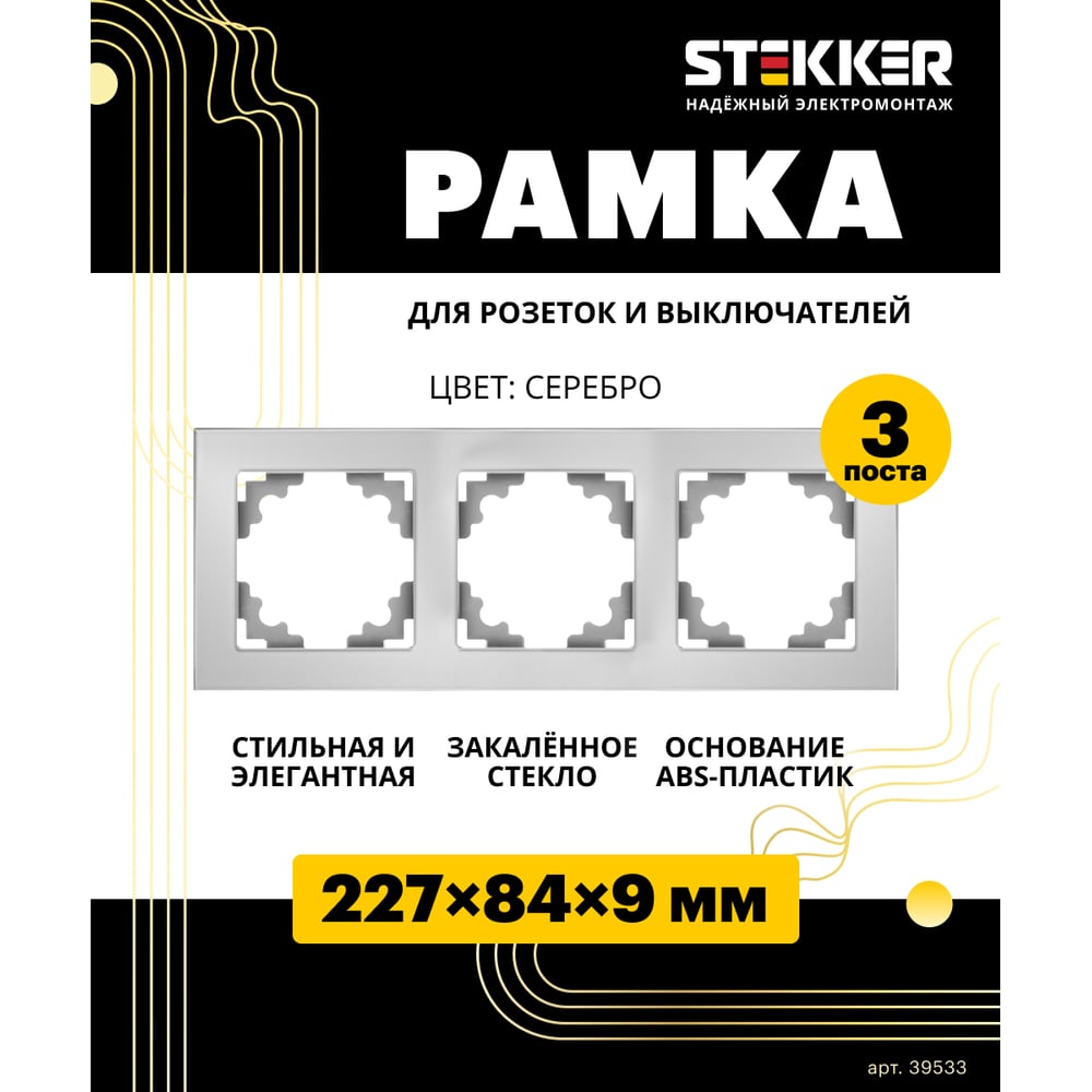 Горизонтальная 3-местная рамка STEKKER серия Катрин, стеклянная, GFR00-7003-03, серебро 39533