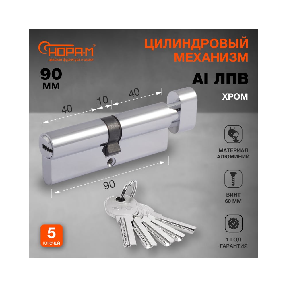 Цилиндровый механизм НОРА-М STD AL ЛПВ-90 45-45 хром 15542