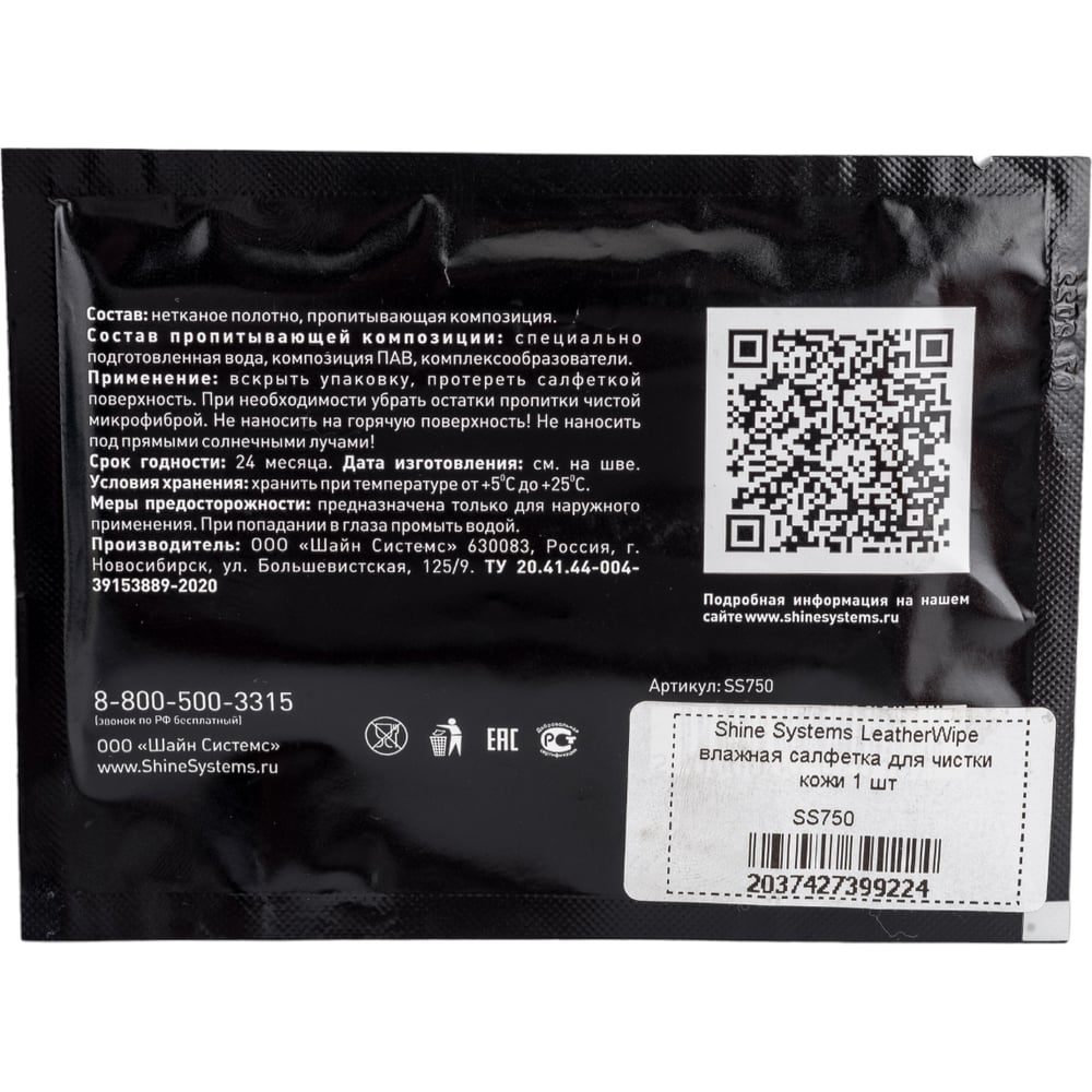 Влажная салфетка для чистки кожи Shine systems LeatherWipe, 1 шт. SS750