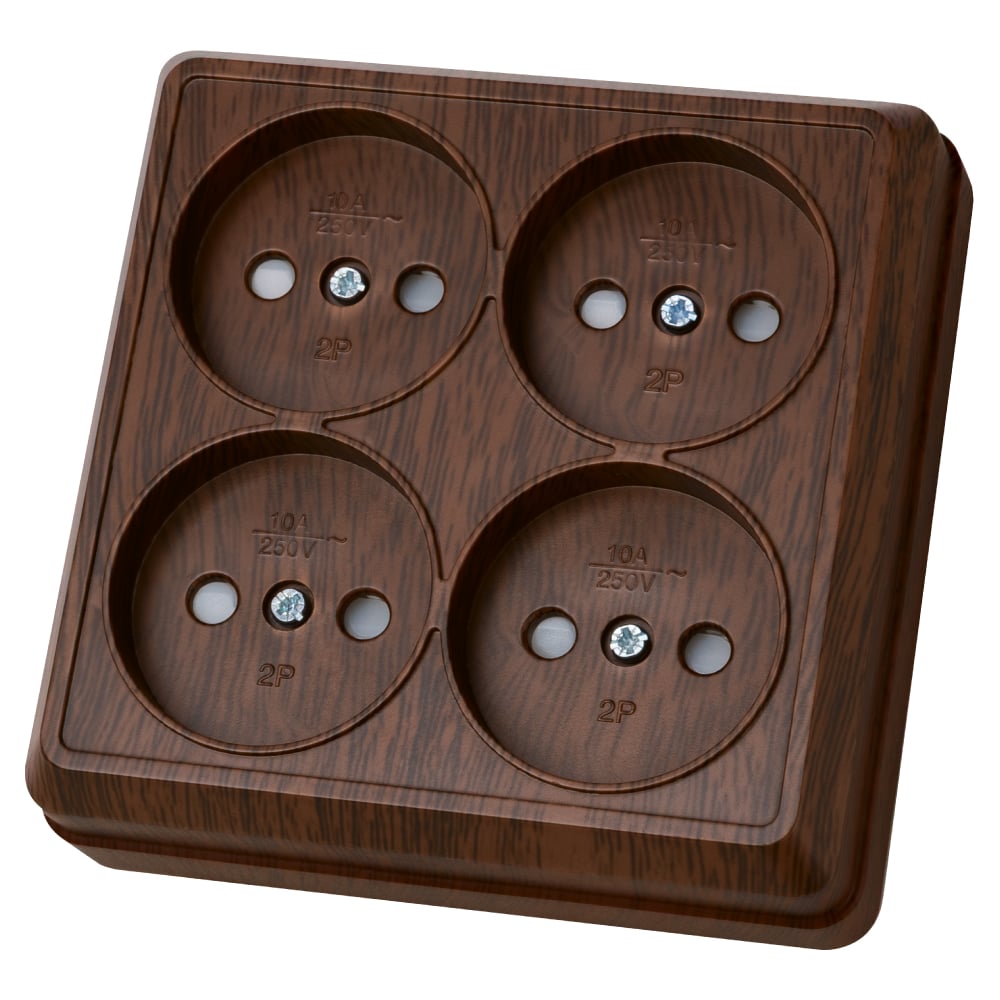Розетка TDM ELECTRIC четырехместная 2П открытой установки IP20 10A с защитными шторками бук, серия "Ладога" SQ1801-0321