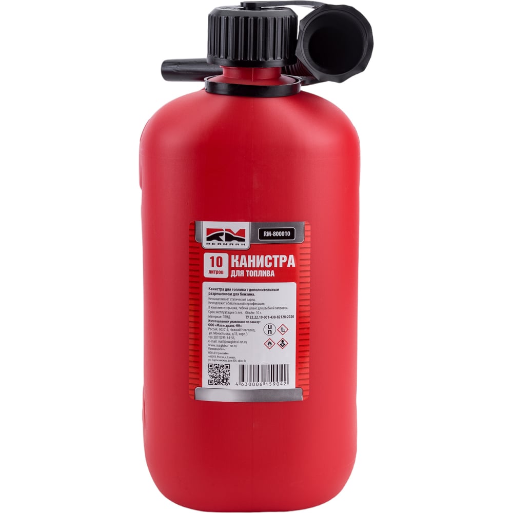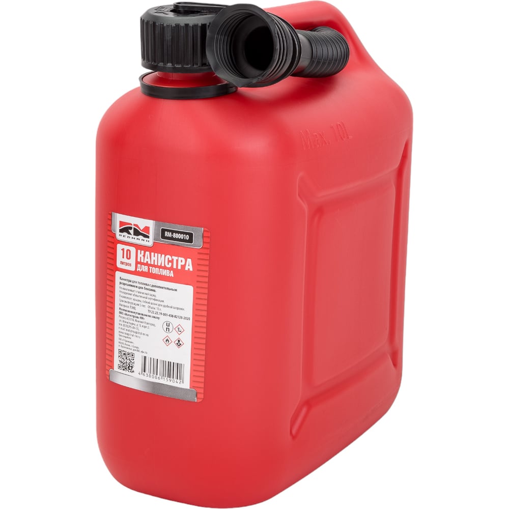 Канистра полиэтиленовая красная для ГСМ с заливным устройством 10 л REDMARK RM800010
