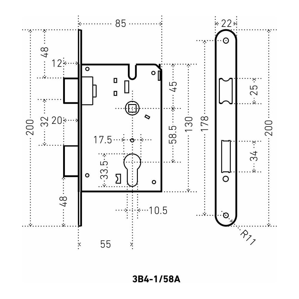 Врезной замок Аллюр ЗВ4-1/58A CP 7161