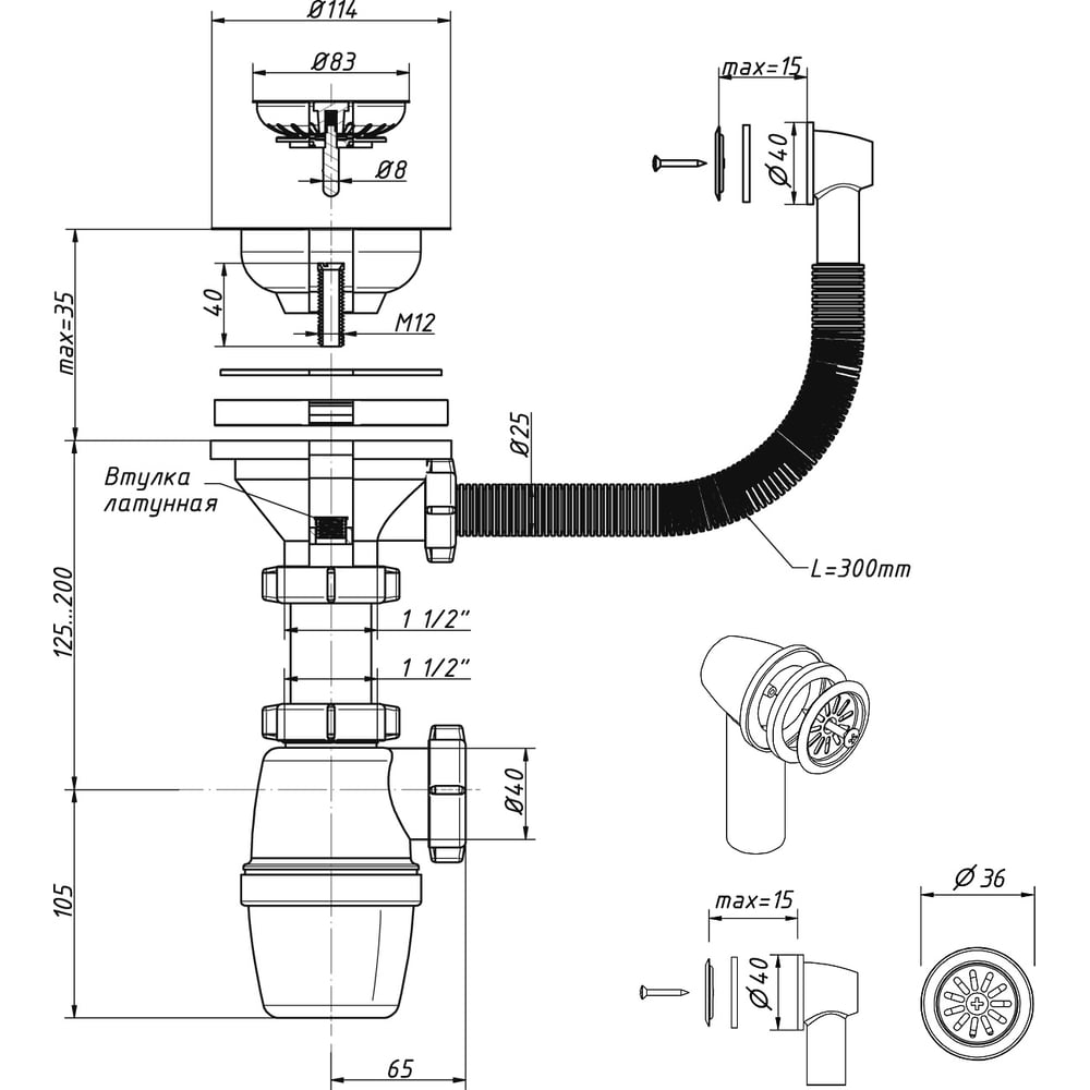 Бутылочный сифон ORIO 3 1/2х40, с круглым переливом А-5007