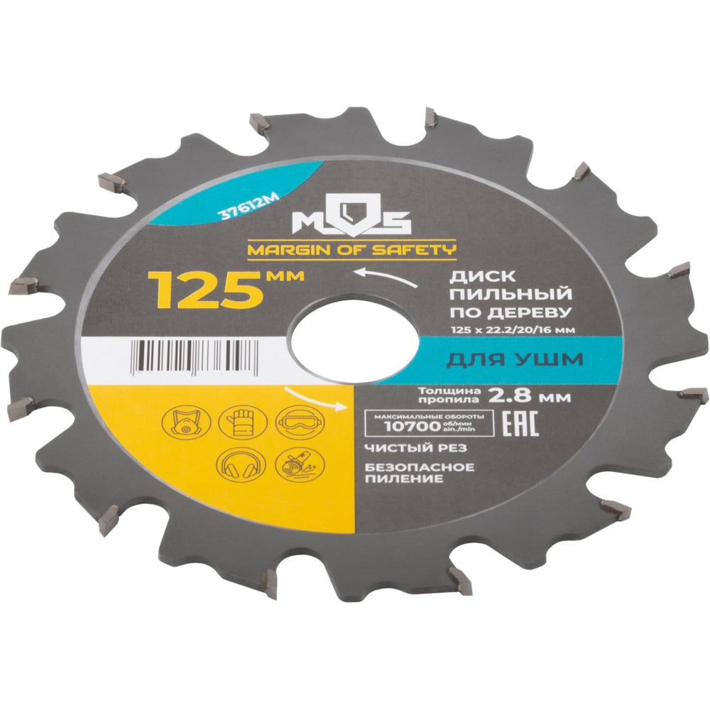 Диск пильный (125x22.2 мм, 12 зубьев, переходные кольца 22.2/20 мм и 22.2/16 мм) для УШМ MOS 37612М