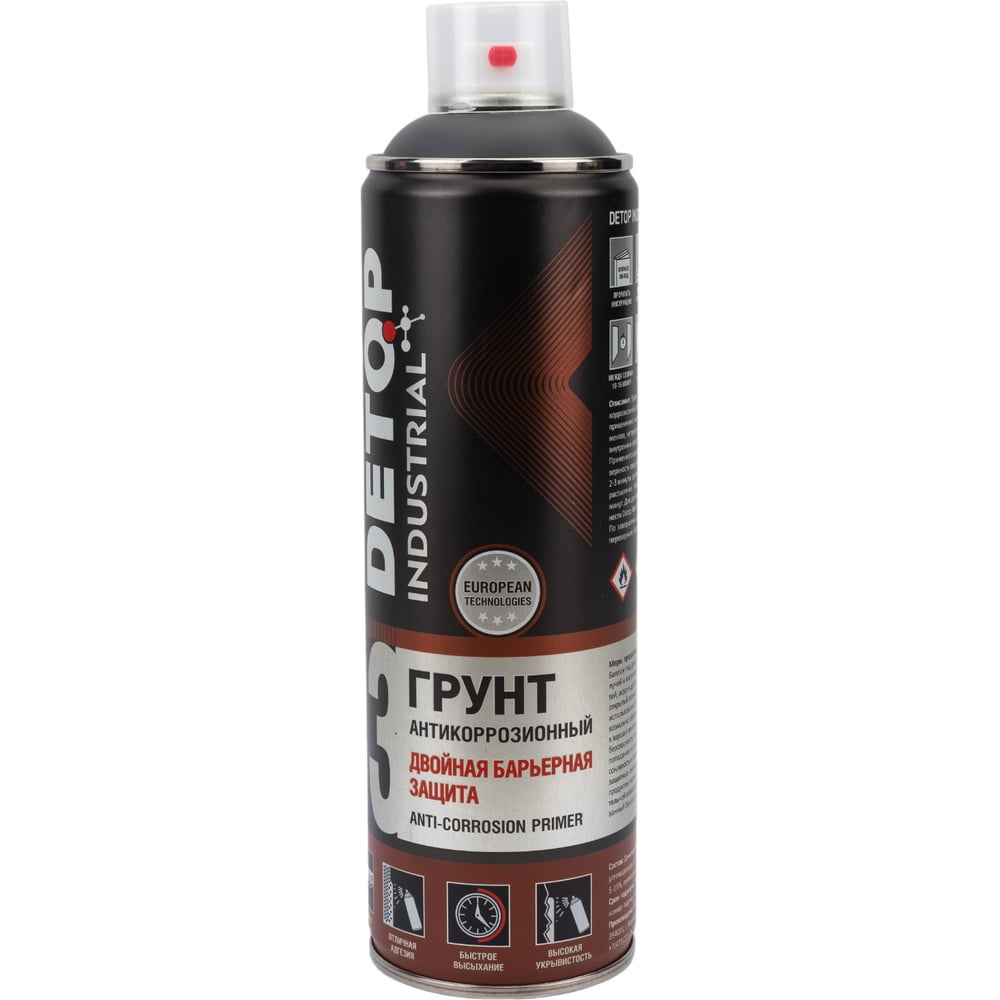 Грунт Detop INDUSTRIAL №3 двойная барьерная защита, графитовый, RAL 7024, аэрозоль 650 мл DTI-A07739