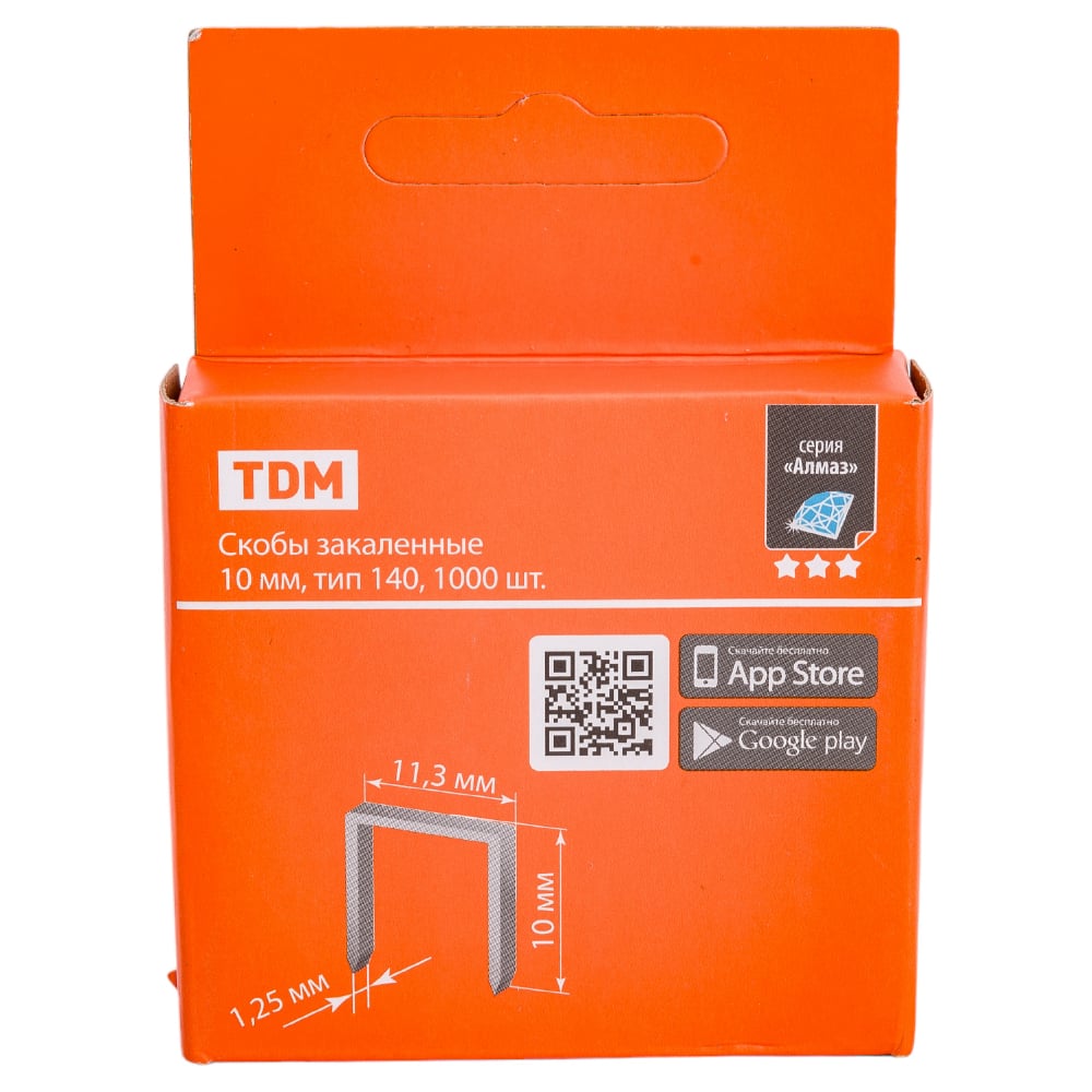 Закаленные скобы TDM Алмаз 10 мм, тип 140, 1000 шт. SQ1038-0202