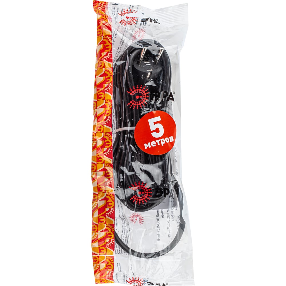Сетевой шнур с вилкой ЭРА UX3x0,755mB с заземлением 5м ПВС 3x0,75мм2 черный Б0048695