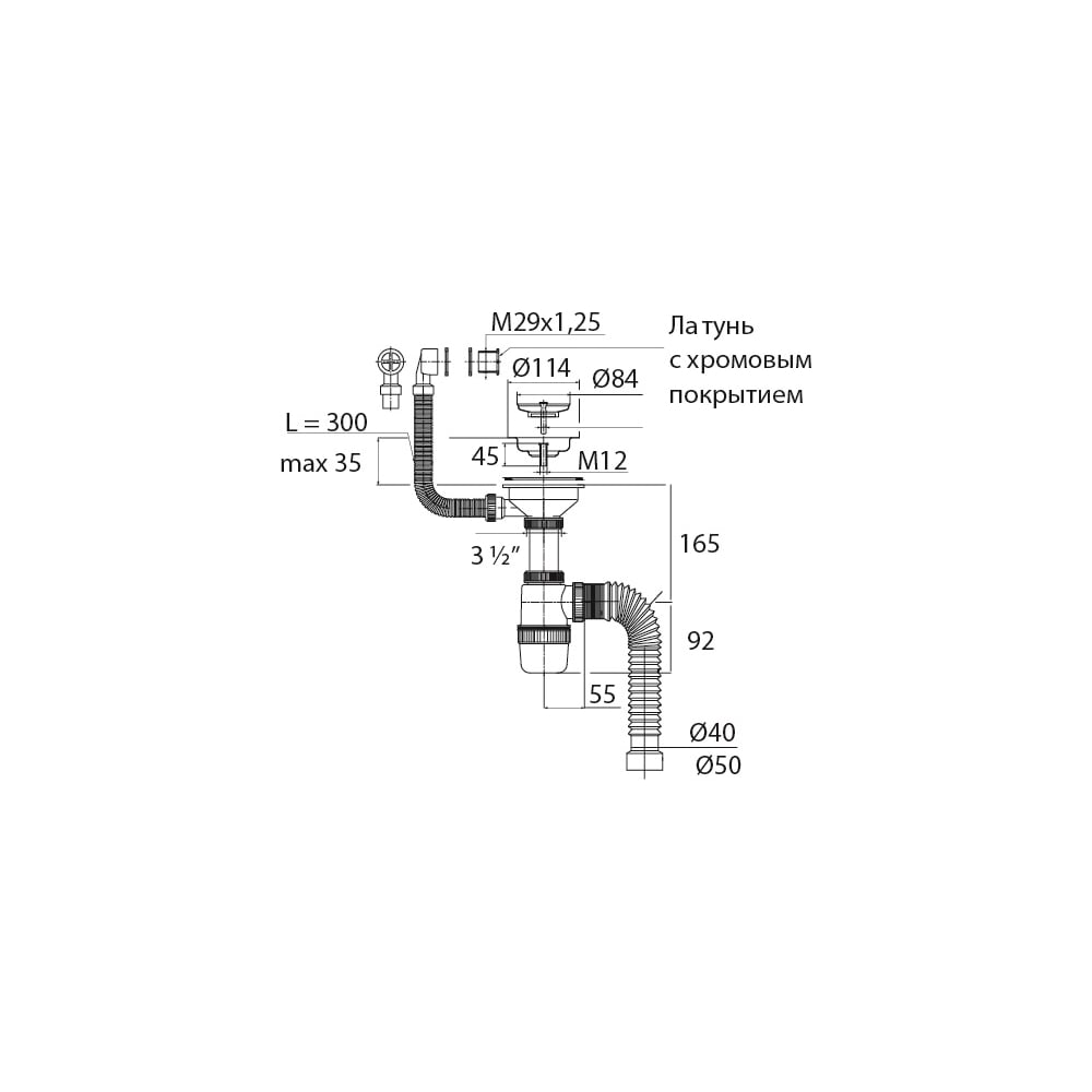 Сифон VIRPLAST VIR Элит 3½ х 40 мм с нержавеющей чашкой D114 мм, с круглым переливом L300 мм и с гофротрубой L800 мм 40х40/50 мм, 30986164