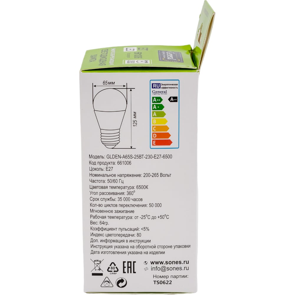 GLDEN-A65S-25ВТ-230-E27-6500