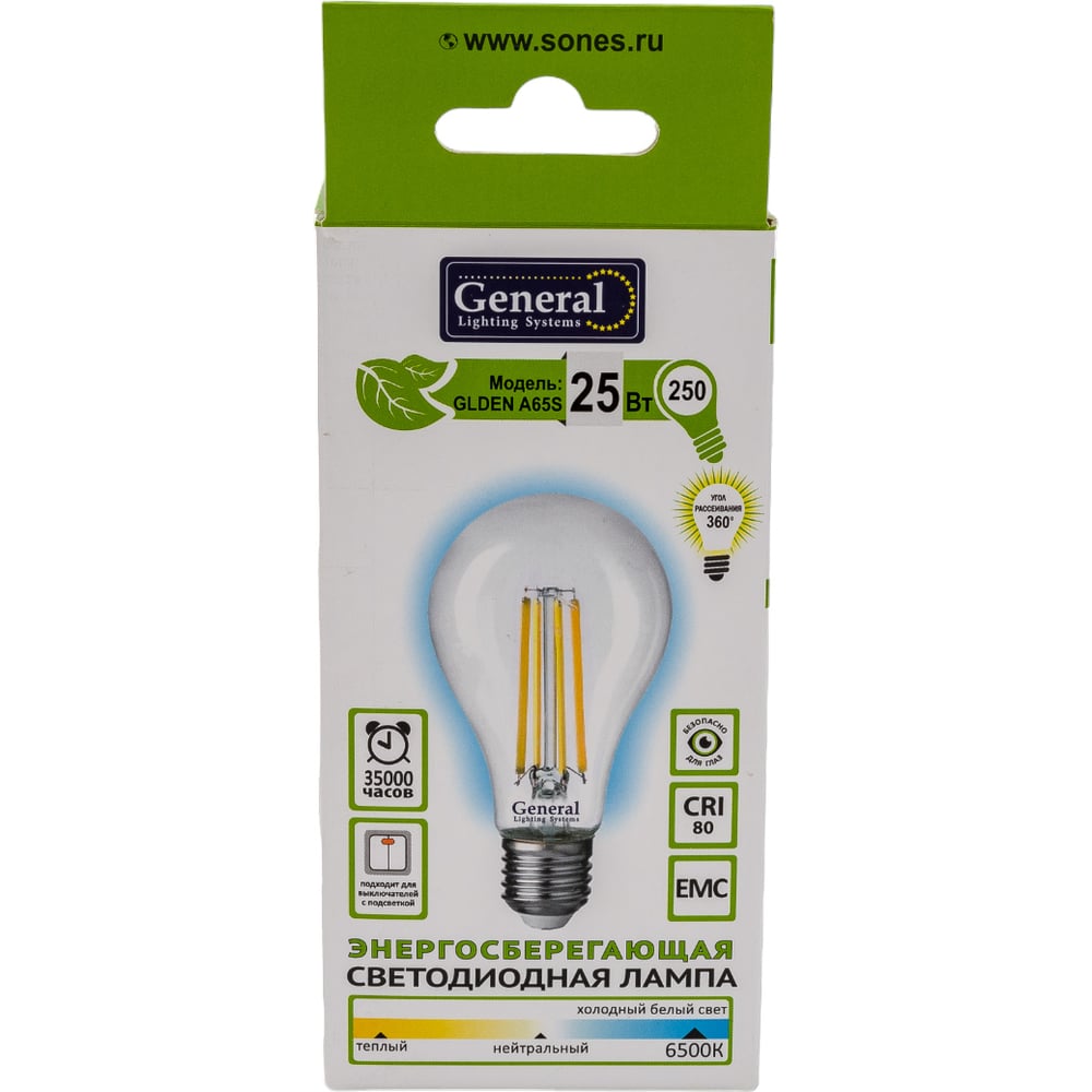 Лампа General Lighting Systems GLDEN-A65S-25ВТ-230-E27-6500 661006
