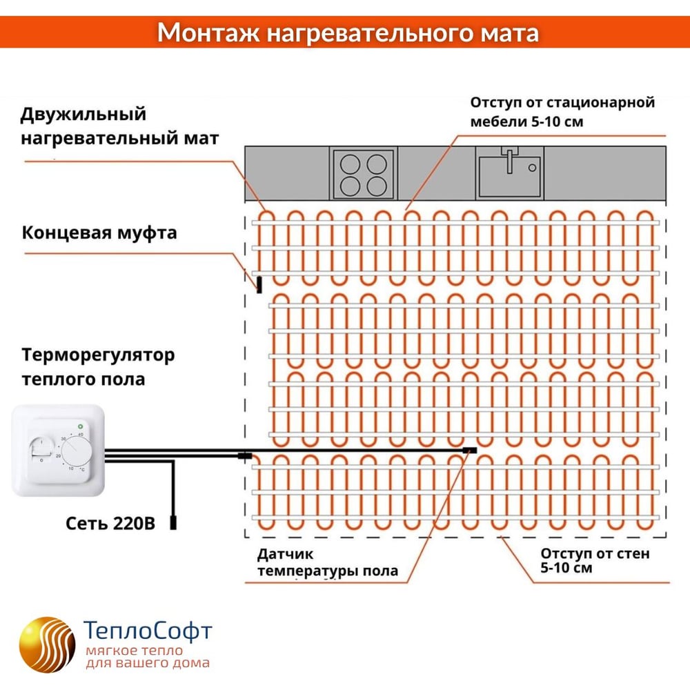 Нагревательный мат ТеплоСофт Профи 3м.кв. 450Вт с терморегулятором 3450
