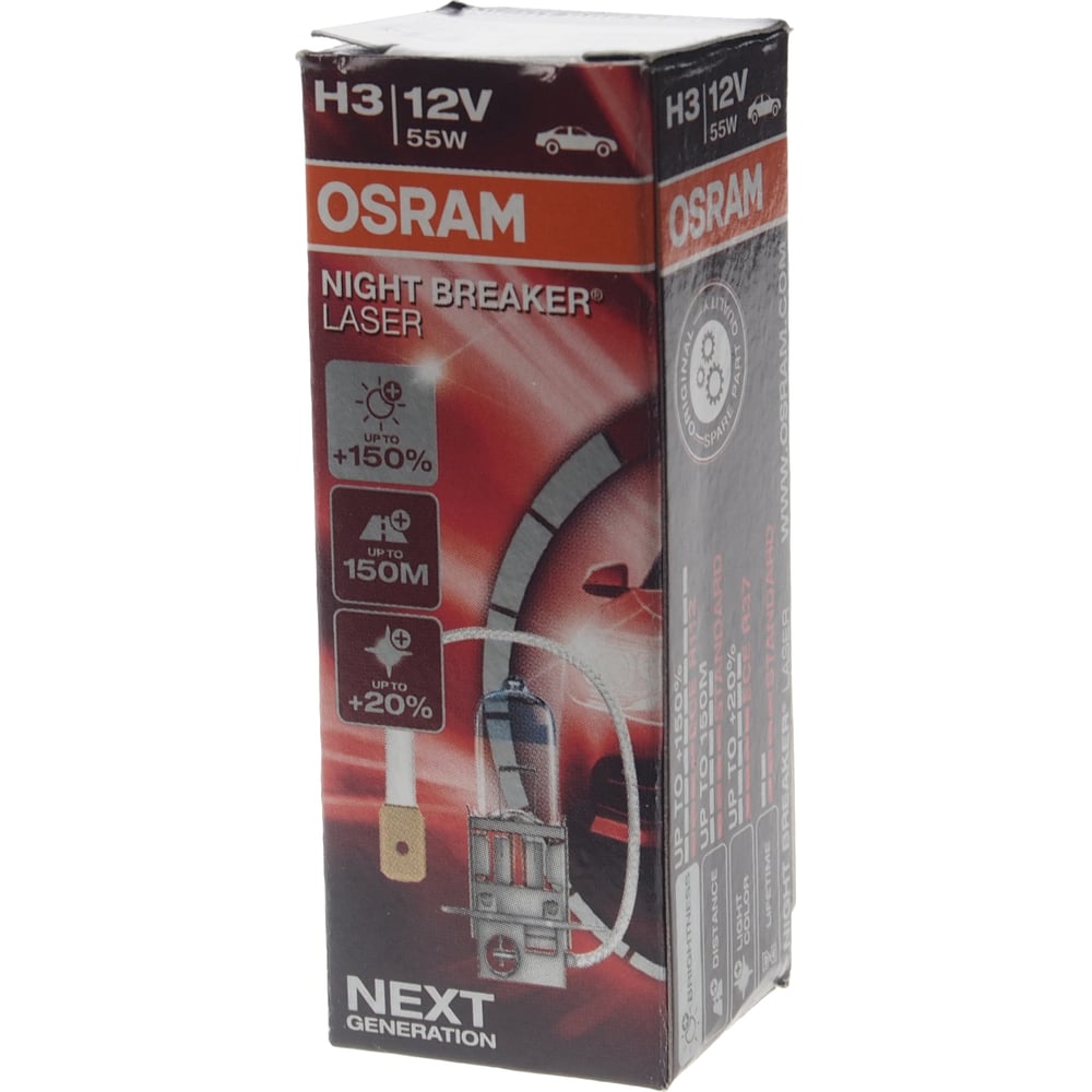 Автолампа Osram H3 55 PK22s+150 NIGHT LASER 3400K 12V ,1,10 64151NL
